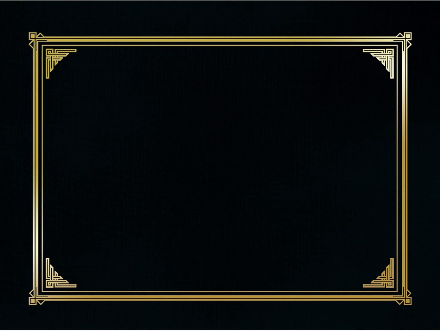 - CERTIFICATE COVER: These high quality black document holders feature a classic, gold foil border design, reinforced edges on all interior sides, and die-cut corner slots to various certificate sizes
