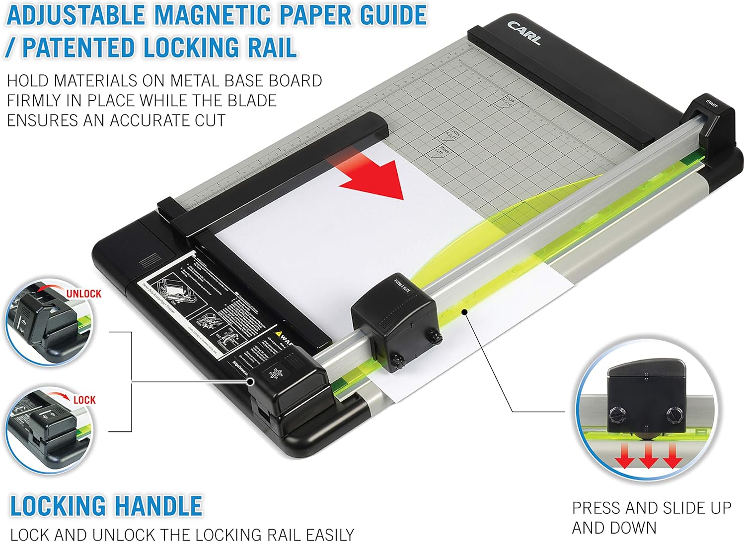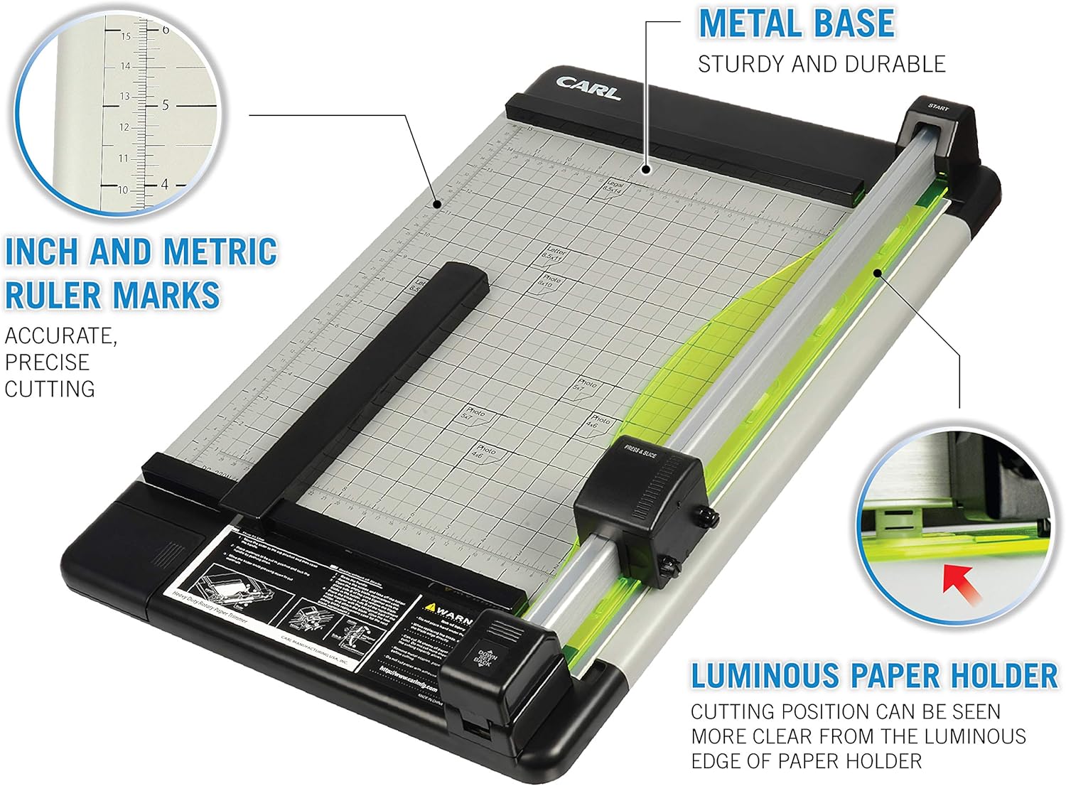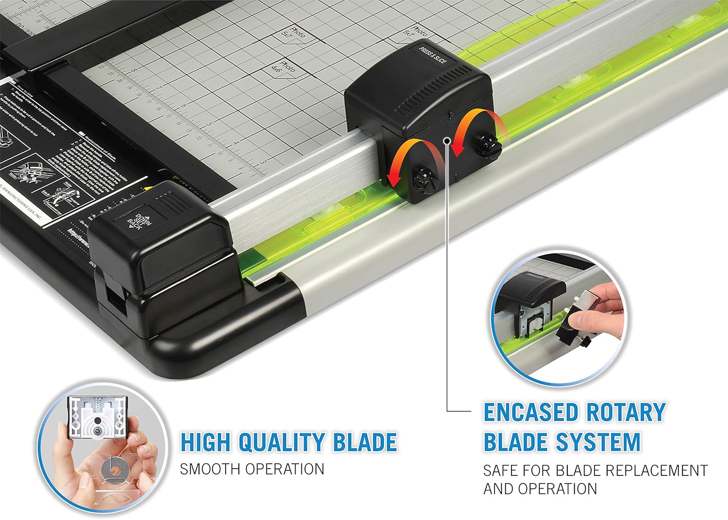 - All paper crafting enthusiasts know that a rotary trimmer is a must-have. Locking rail mechanism, luminous paper holder, adjustable magnetic paper guide, storage compartment for extra blades and mats. Made from recycled materials.