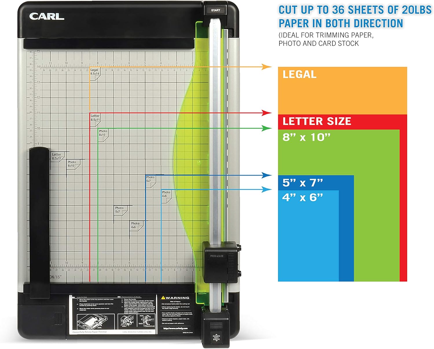 Carl Manufacturing 12220 HVY-Duty Paper Trimmer 15-Inch 36 Sht Cap. 14-Inch x15-1/4-Inch x3/4-Inch GY