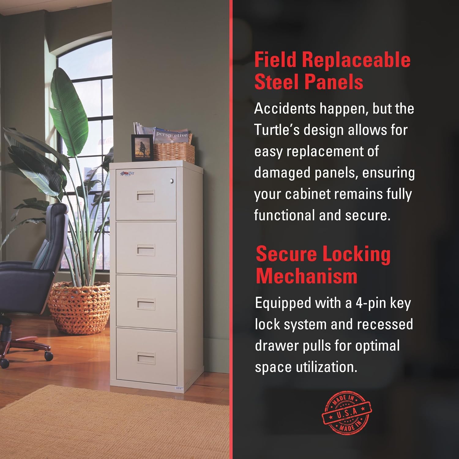 FireKing Turtle Vertical 2 Drawer Legal and Letter Fire Safe File Cabinet with Key Lock, 1 Hour Fire Rated, UL Rated & Water Resistant Home Safe, Filing Cabinet, Made in The USA, Parchment