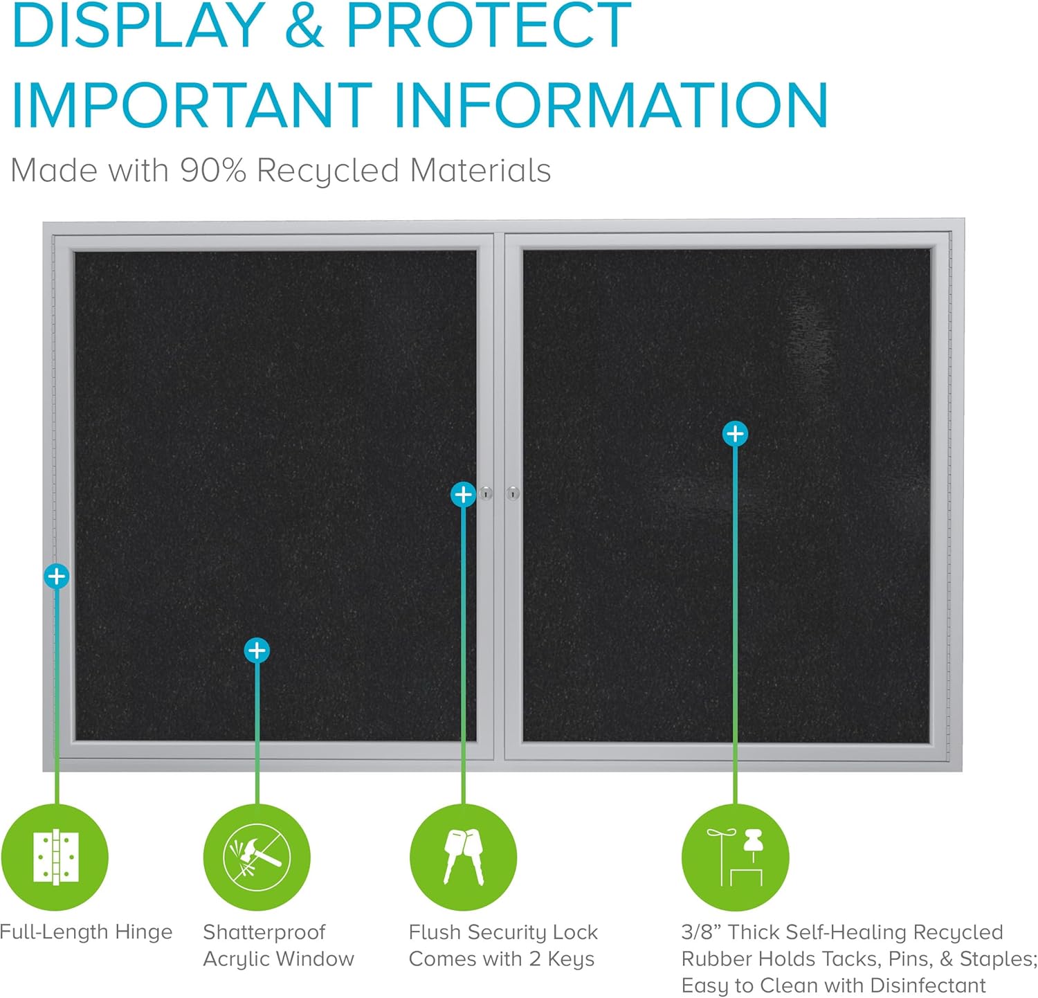 - SECURE YOUR DOCUMENTS: With this locking bulletin board, the doors feature full-length hinges, flush mount locks, and keys for added security