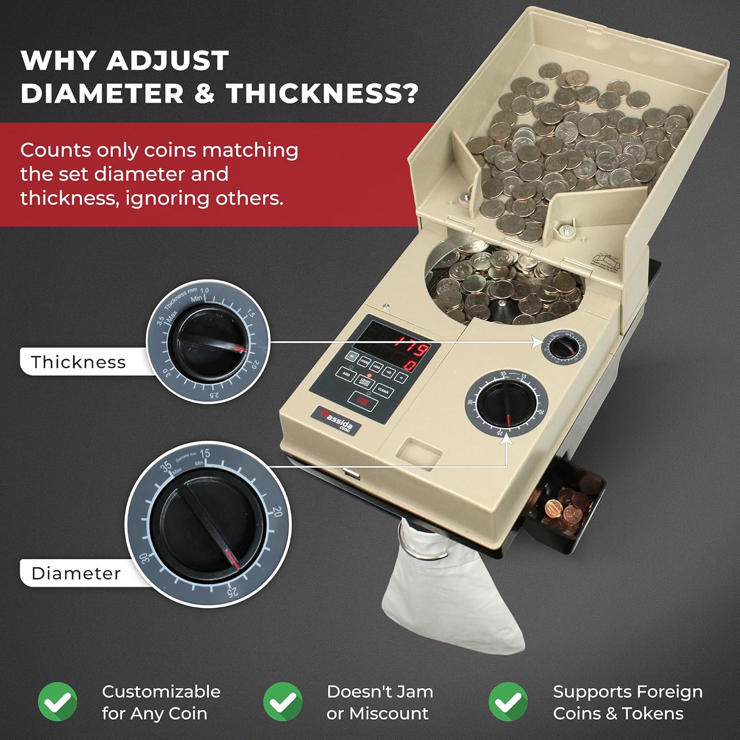 - Hopper capacity: 4000 coins (dimes), Counting speed: up to 2000 coins/minute