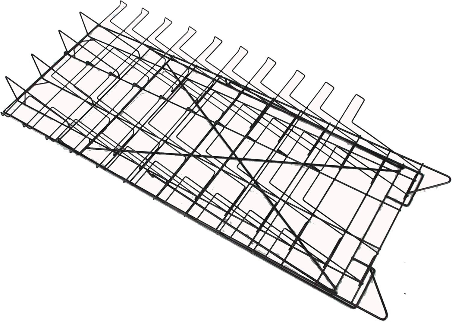 - Black welded wire rack is lightweight and easy to reposition throughout a room.