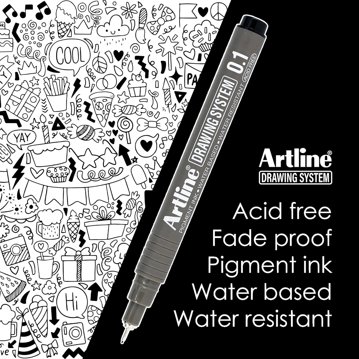 Artline 230 Drawing System Pens, Technical Drawing Pens For Drafting, Illustrating, and More, 0.1mm, 0.2mm, 0.3mm, 0.4mm, 0.5mm, and 0.8mm Fine Tips - Black, 6-Pack