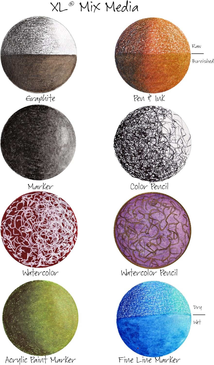 - SAFE FOR PAINT & PENCIL – Mixed media paper is designed to accommodate a variety of art materials, such as colored pencils, solvent-based markers, charcoal, brush pens, ink pens, watercolor paints, pastels, fineliners and gouache. Fun note: professional illustrators prefer the versatility of mixed media paper and agree the choice of paper can make or break the result. Choose wisely!