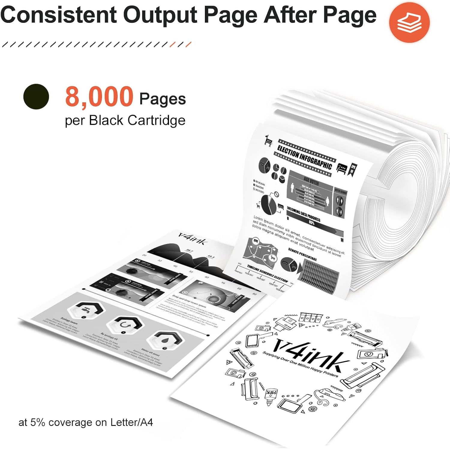 - Include 2 packs of v4ink TN580 TN650 high yield black toner cartridges and an install instruction.