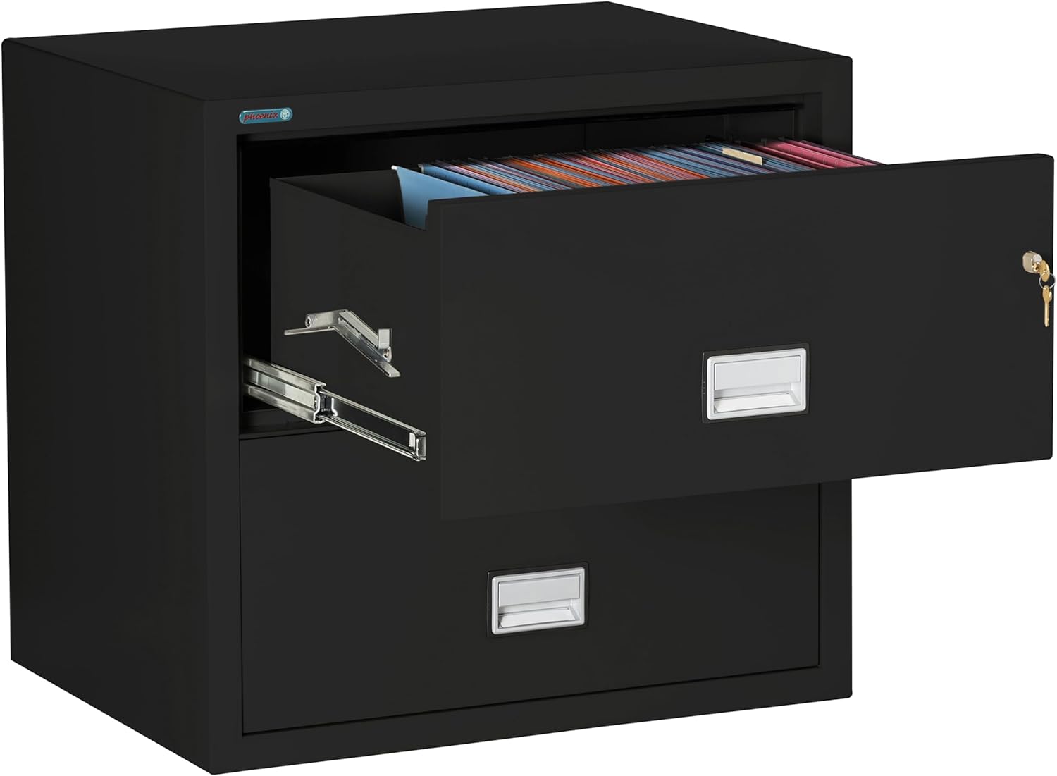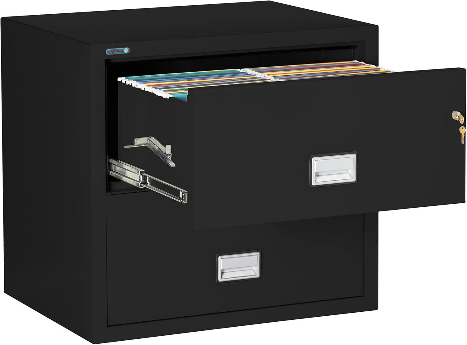31 inch Wide 2-Drawer Lateral Fireproof File Cabinet – Legal and Letter Size Filing – Key Lock – Water Resistant – Fire Safe and Impact Rated – Black Finish – Model LAT2W31B