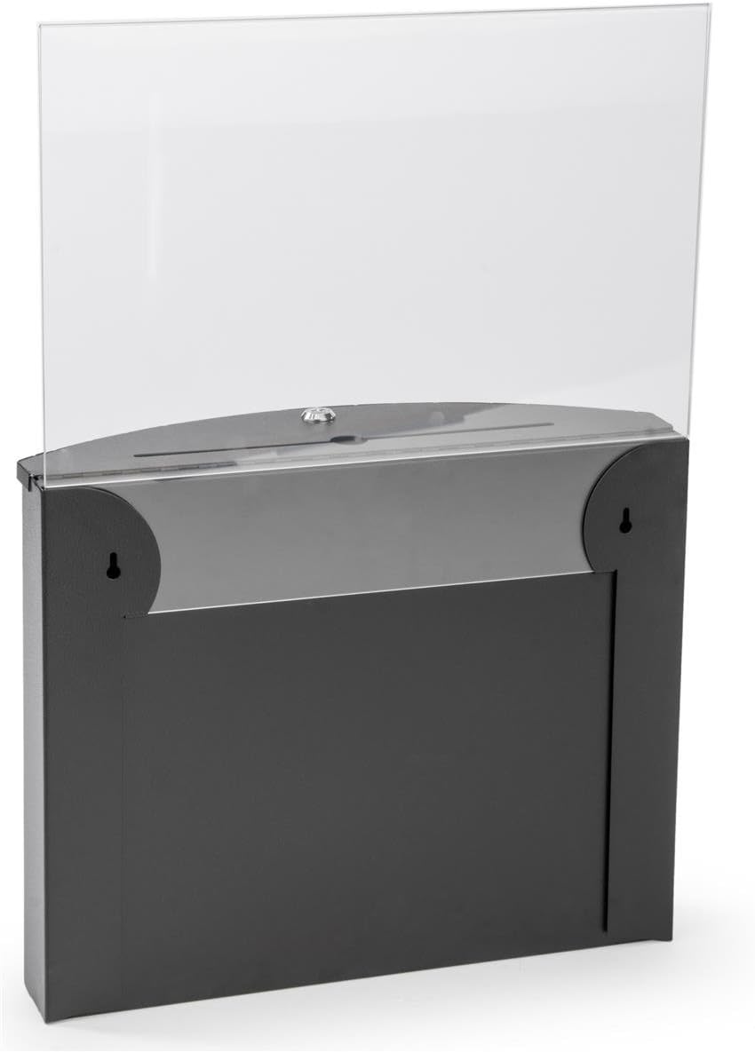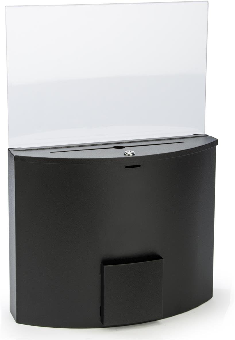 Ballot and Suggestion Box, Locking, Includes 17" x 11" Sign Holder, Pocket for Papers (Black, Metal)