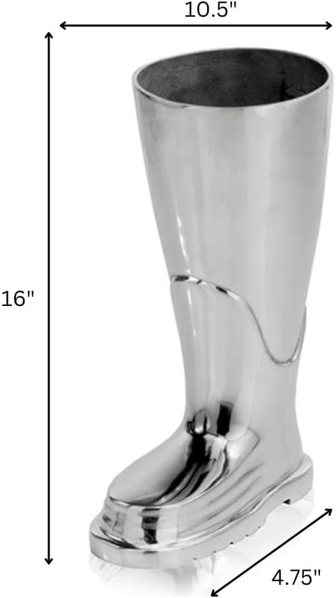 - FIREMAN'S BOOT UMBRELLA HOLDER: Resembling a fireman’s boot, this fun yet sophisticated umbrella stand is constructed of cast aluminum with a buffed shiny silver luster.