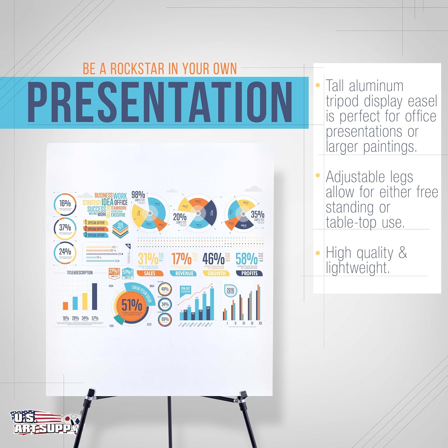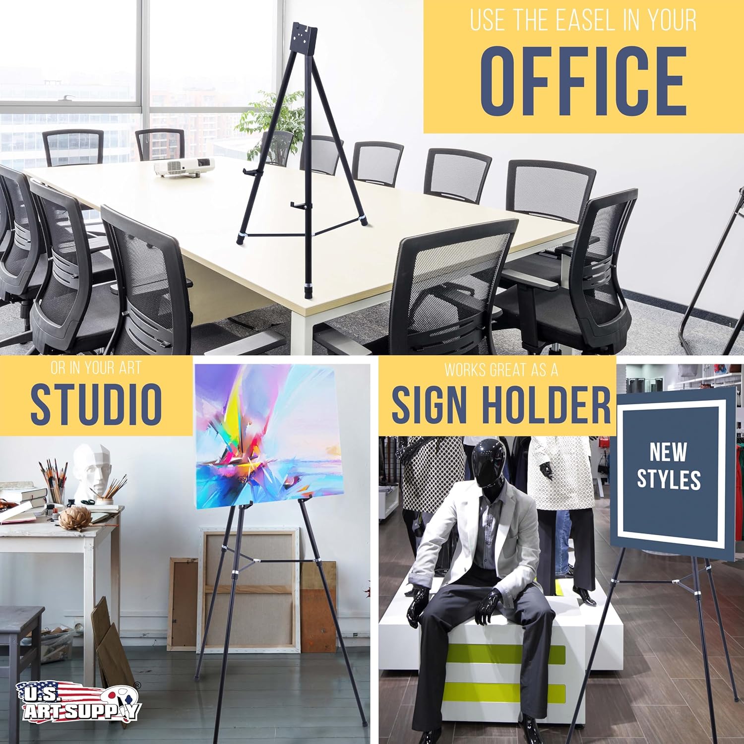 U.S. Art Supply 70" High Showroom XL Silver Metal Display Easel - Large Adjustable Height Portable Easel Stand, Sign Display, Holds 45 lbs - Floor & Tabletop Easels, Painting Stand