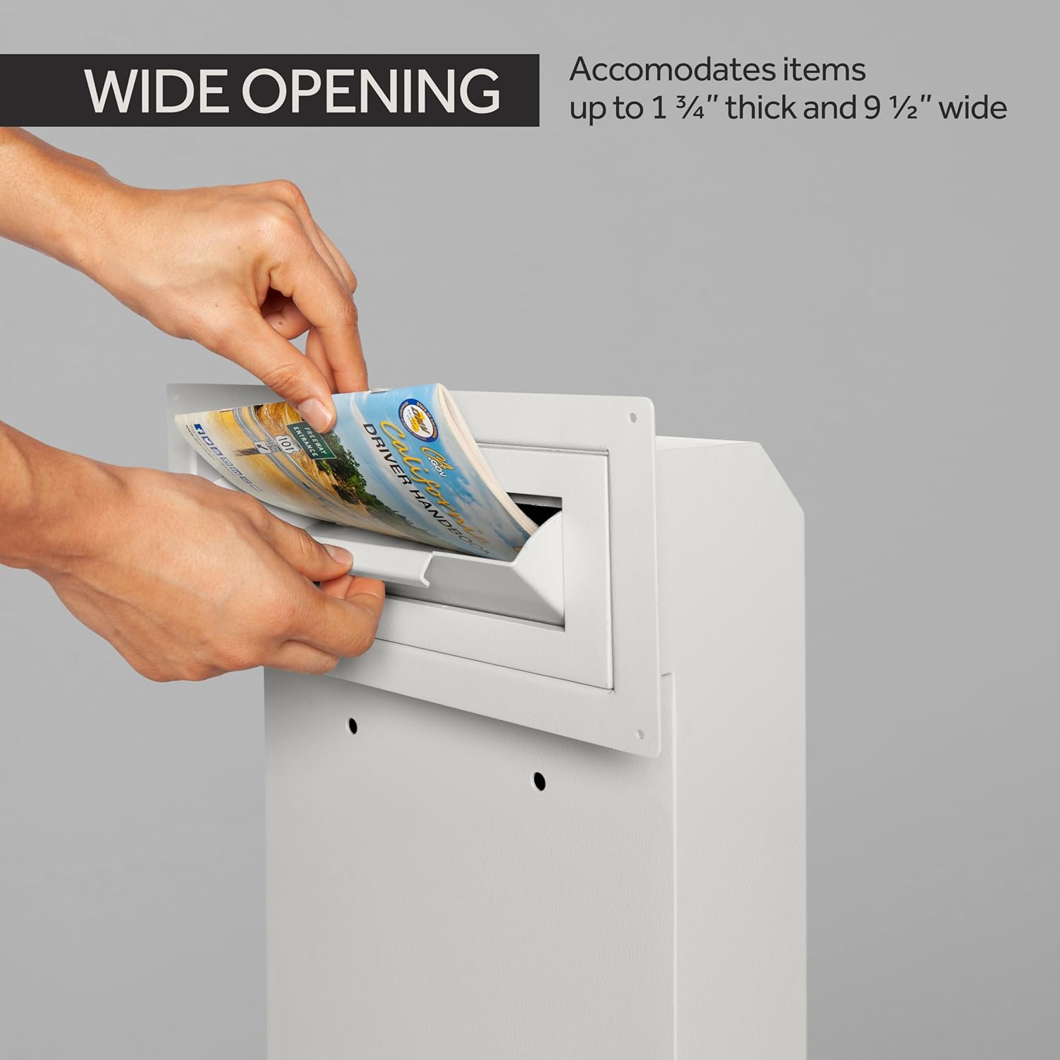 - SECURE β Designed with security in mind, this wall-mounted drop box features a reinforced double steel door, a durable piano hinge, and two internal metal baffles to prevent tampering, prying, or fishing. The tubular lock and key system offers additional protection against unauthorized access.