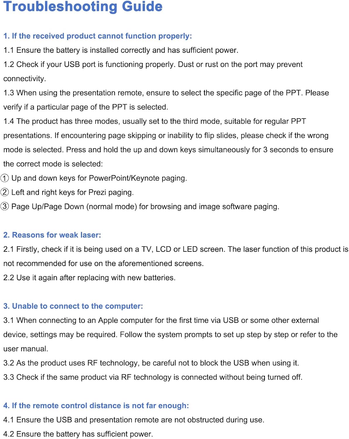 - 【PLUG & PLAY】 The clicker pointer for presentations is easy to use, just plug the usb receiver and it is ready to go, no need to download any software. (The USB fits into the bottom of the clicker. )