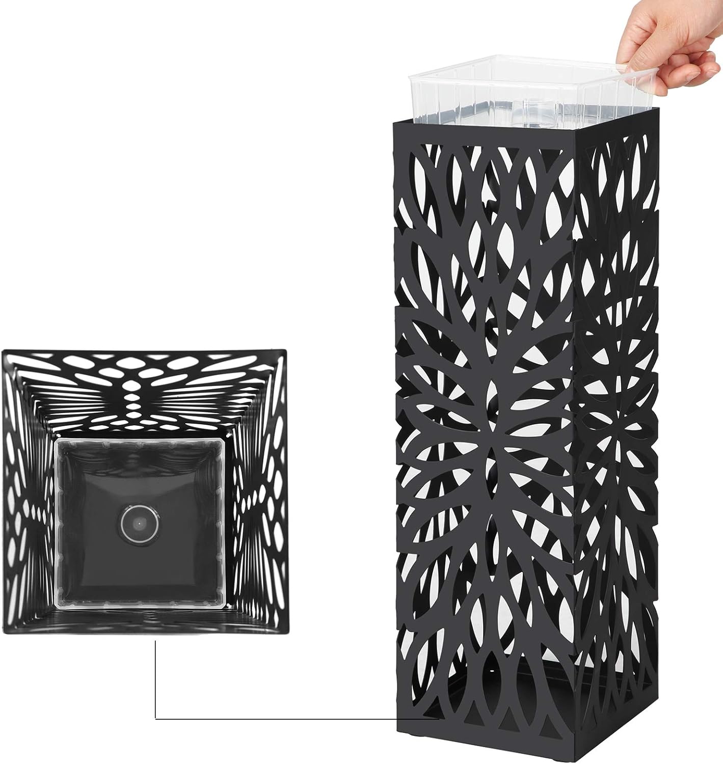 - [Durable and Rust-Resistant] Crafted from durable steel, our square umbrella stand offers exceptional stability and minimizes the risk of tipping over. The surface is coated with rust-resistant paint, ensuring long-lasting protection