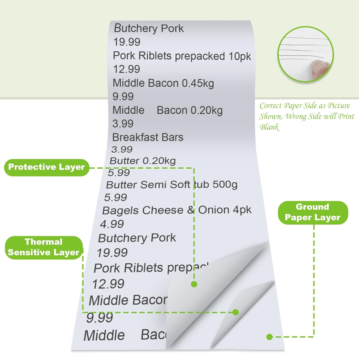 - 🔒 Reliable Performance You Can Count On:Designed for the hustle of daily business. The paper core offers superior stability to prevent jams, while the advanced thermal layer resists fading from light, heat, and moisture. This guarantees your financial records and customer receipts remain intact and readable.