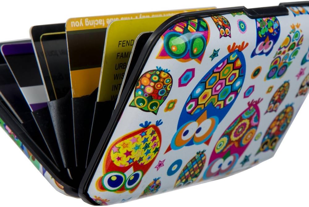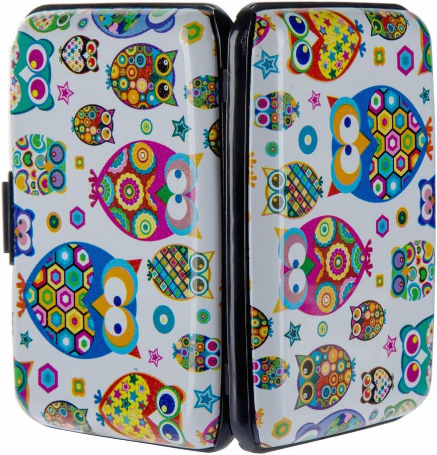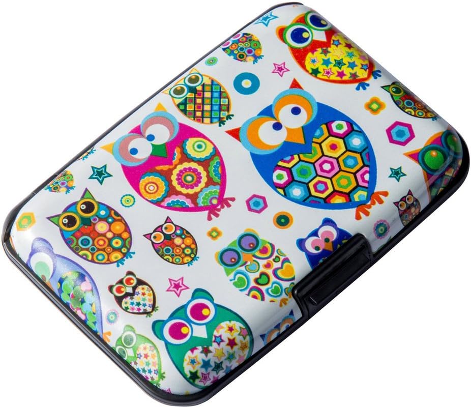 ELFISH Mini RFID Aluminum Wallet Credit Cards Holder Business Card Case Metal ID Case for Men Women (Owl)