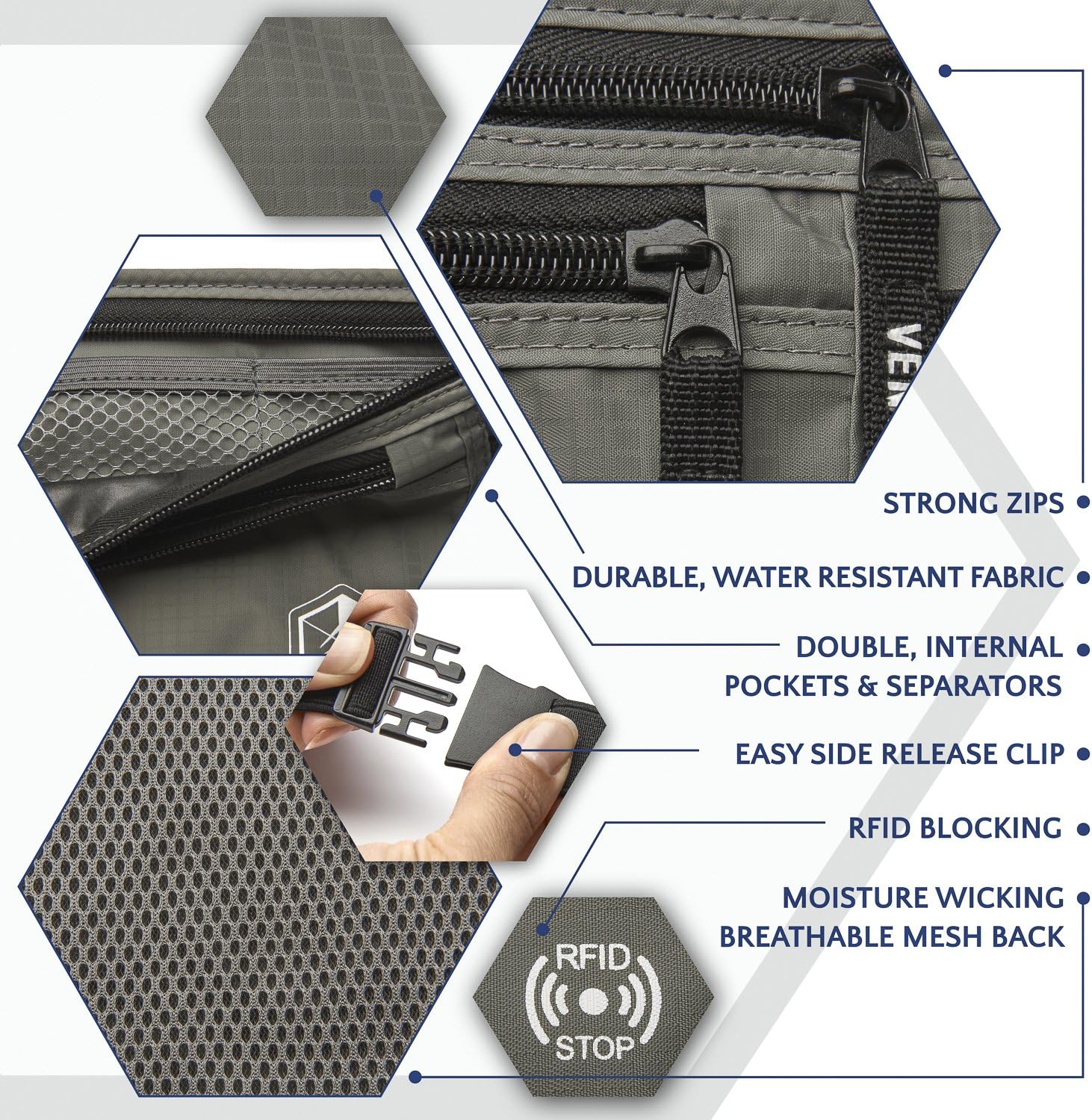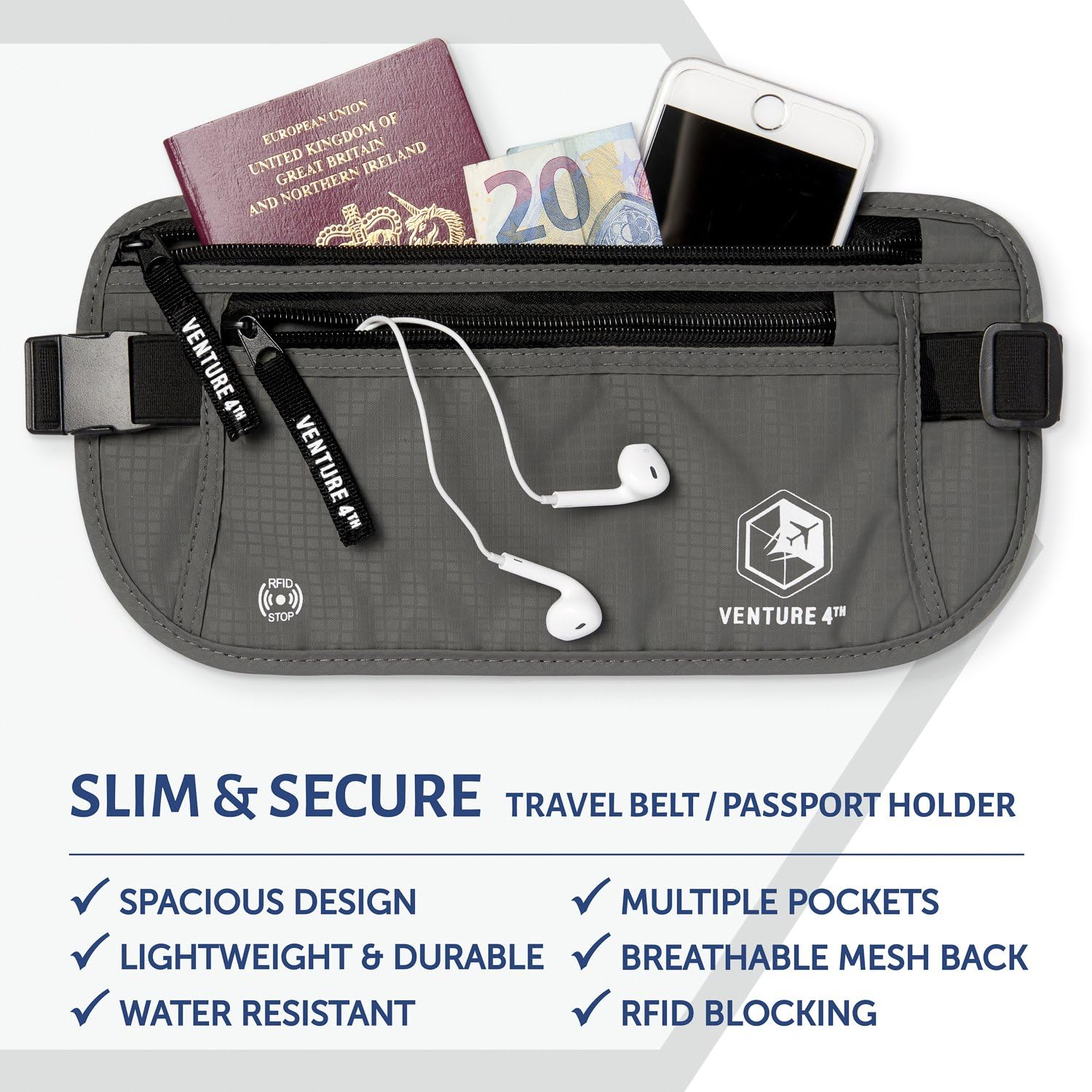 VENTURE 4TH Travel Money Belt - Slim Passport Holder RFID Blocking Travel Pouch to Protect Cash, Credit Cards and Travel Documents (Gray)