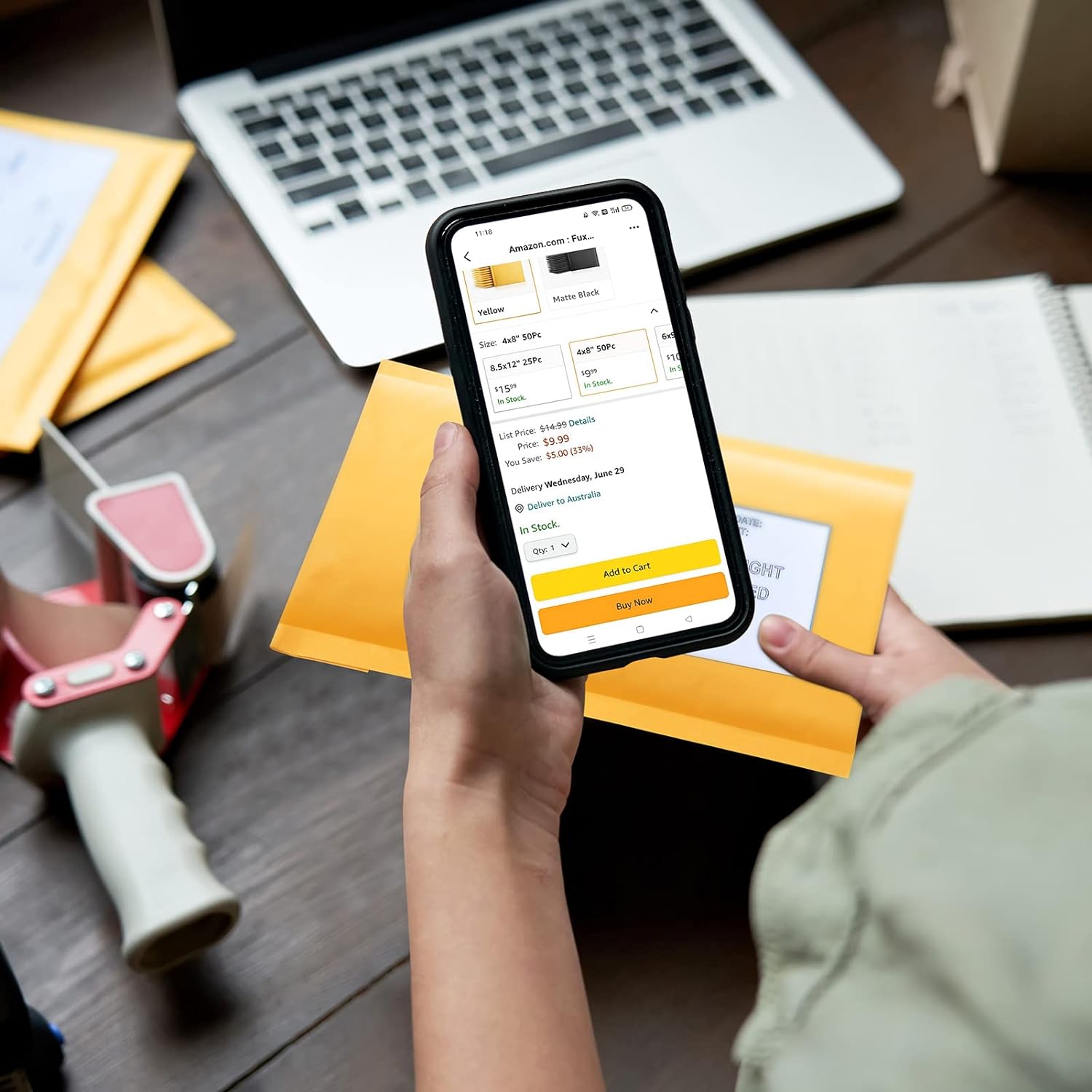 Fuxury Kraft Bubble Mailer 4x8” 50Pack Strong Adhesion Padded Envelopes Thick Bubble Envelopes Usable Size 4x7" Waterproof Cushioned Bubble Mailers Packaging for Small Business #000 Yellow