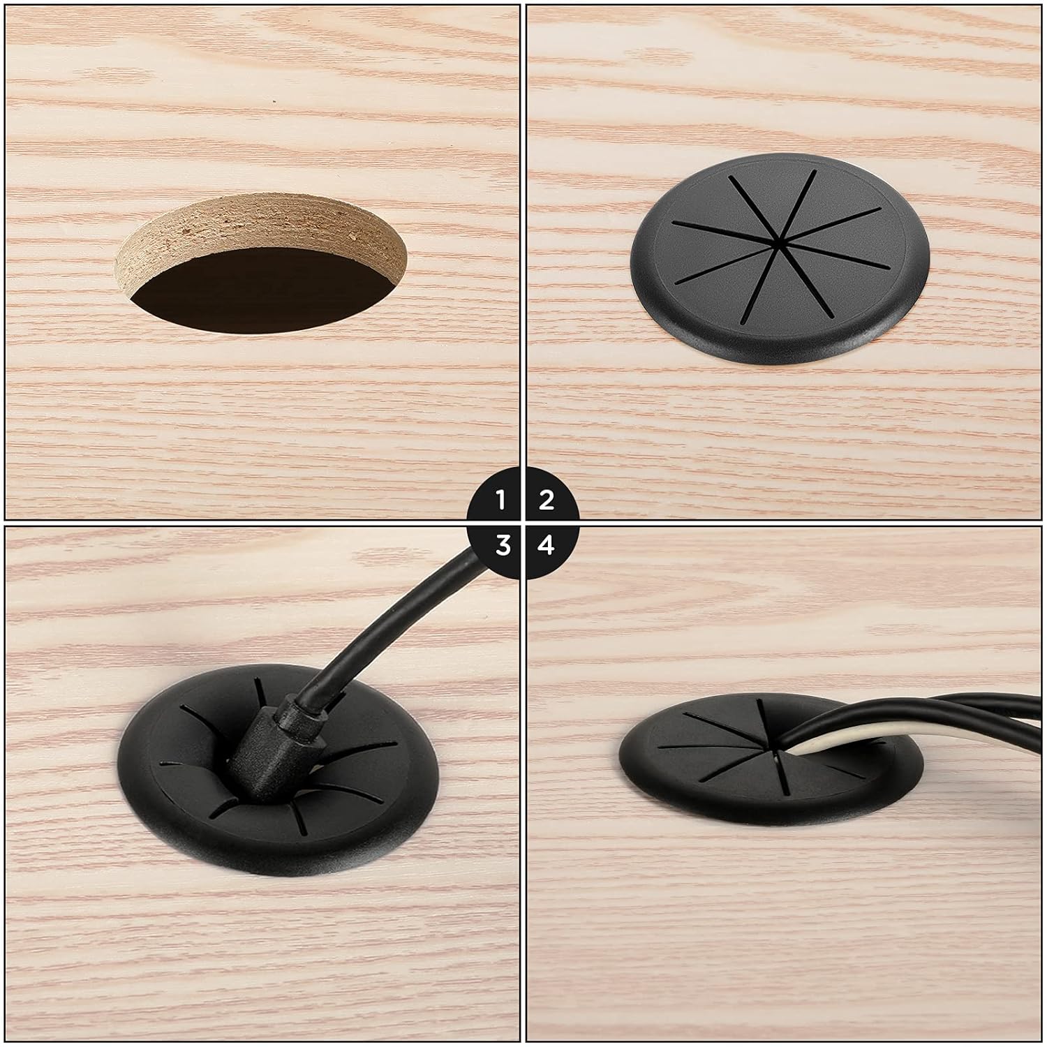 HYCC 5 Pack 2-3/8 Inch Flexible Desk Grommet,Organize Wires and Cables on Office Equipment, Computer Components, Entertainment Systems Effectively - Color: Black