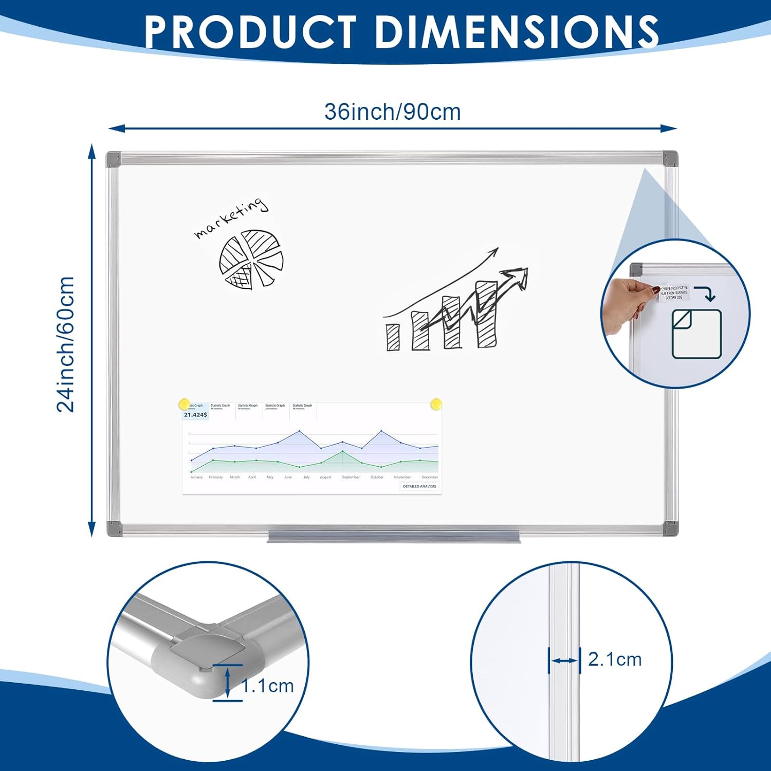 - Multiple Sizes Available to Suit Your Space: In addition to this dry erase board, we offer a variety of sizes ranging from 24x18 to 70x48 inches. Whether you need a compact board for a kitchen wall or a large office white board for meeting rooms, we have the right size for your needs