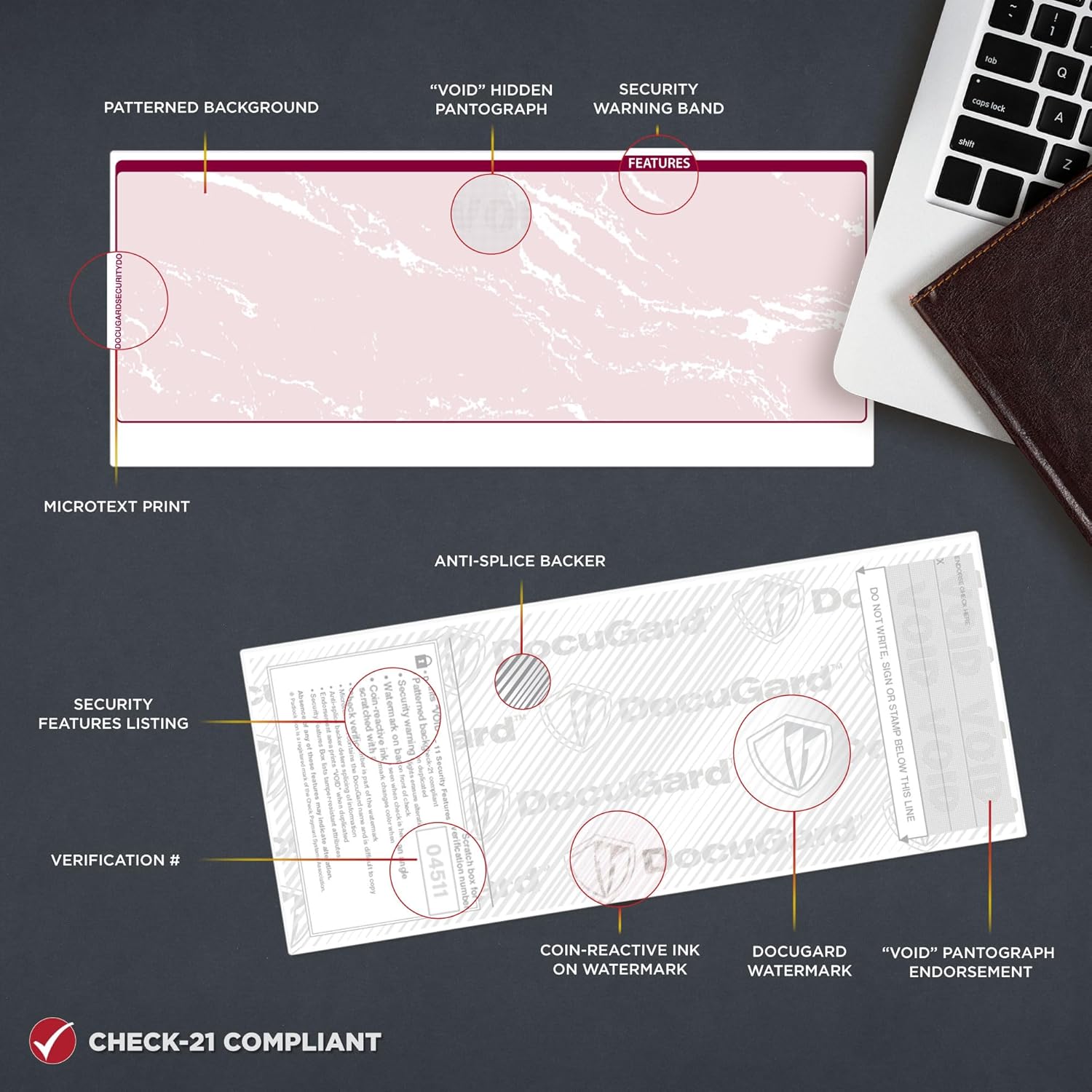 DocuGard Standard Burgundy Marble Middle High Security Check Paper - Laser/Inkjet Printer Compatible - 11 Security Features - 500 Blank Business Checks (04511)