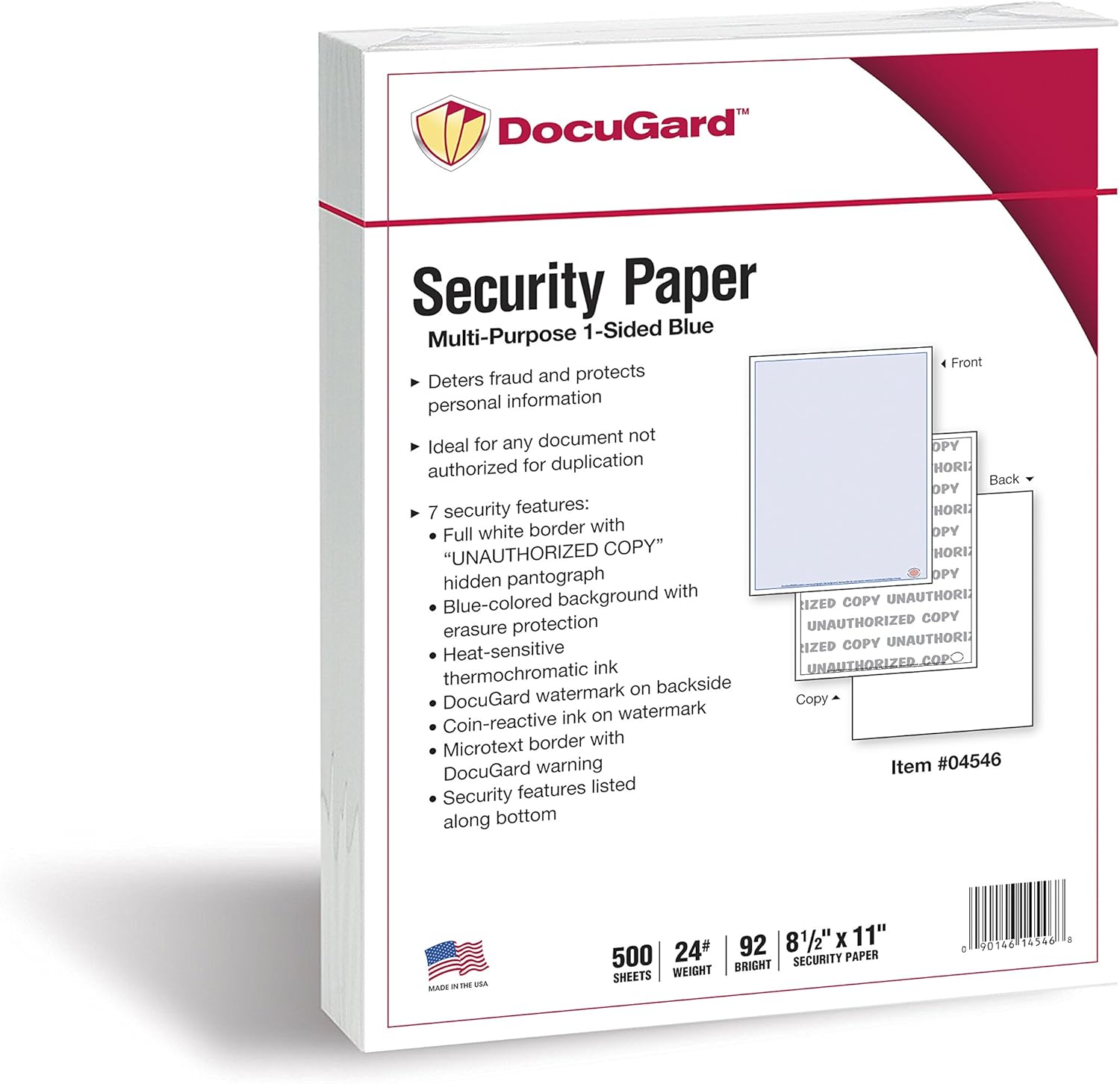 DocuGard Advanced Blue Multi-Purpose Security Paper - Fraud Prevention - 7 Security Features - Laser & Inkjet Printer Compatible - 8.5" x 11“ - 24 lb - 500 Sheets (04546)