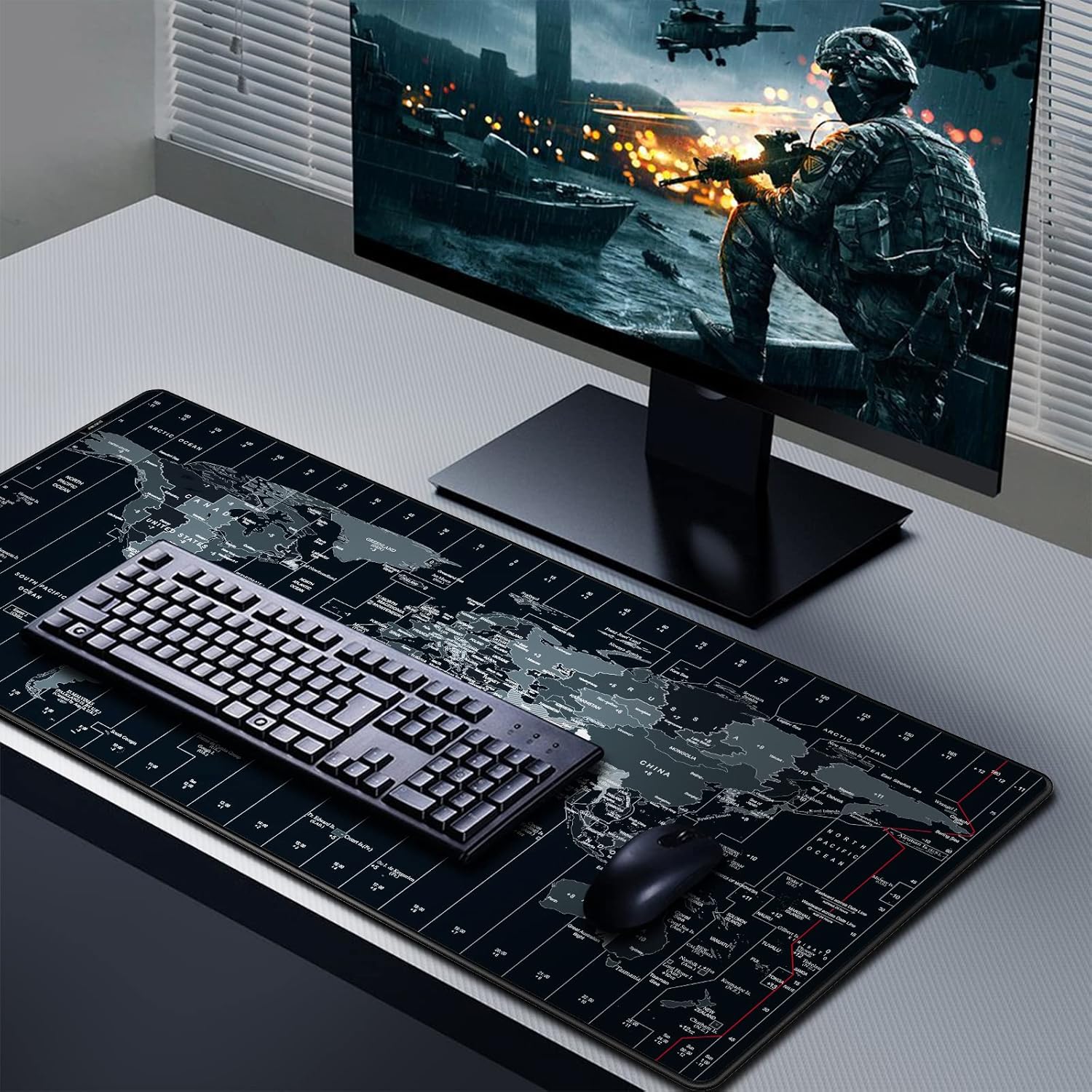 JIALONG Big World Map Large Mouse Pad Gaming Desk Mat XXL Mousepad with Non-Slip Keyboard Pad for Laptop, Computer and PC - 35.4 x 15.7 inches
