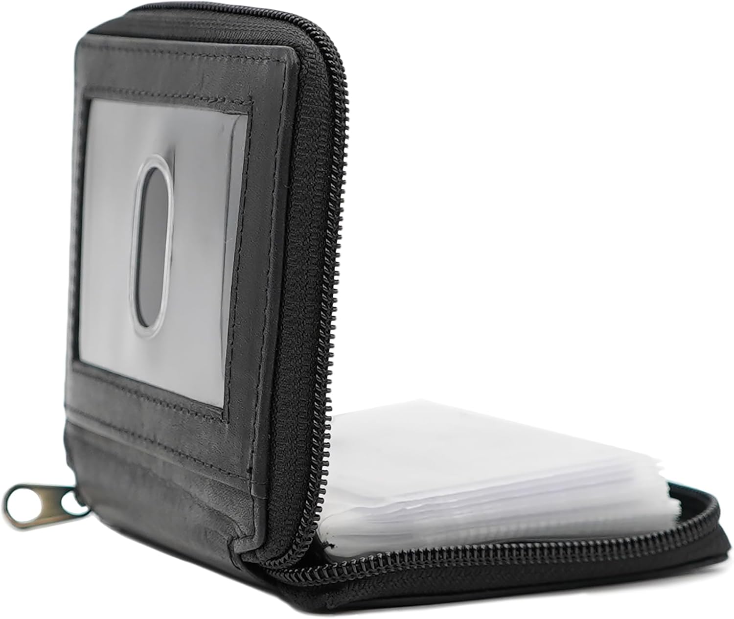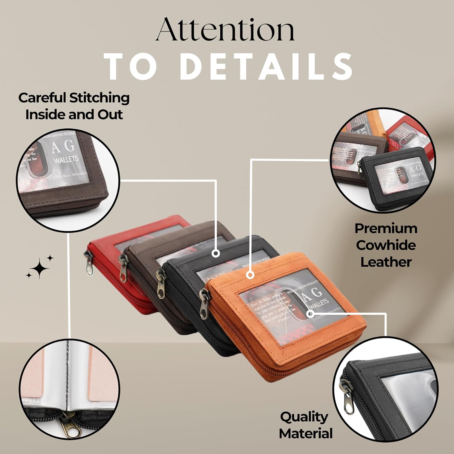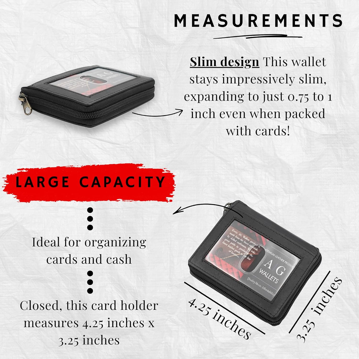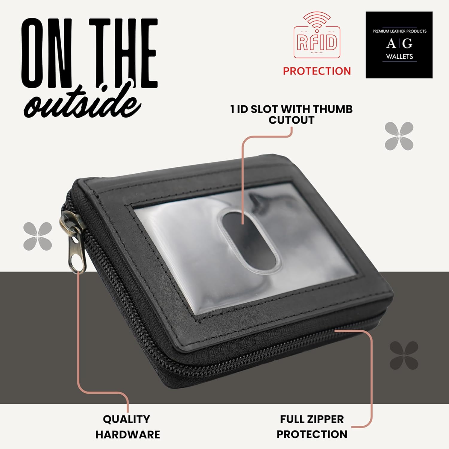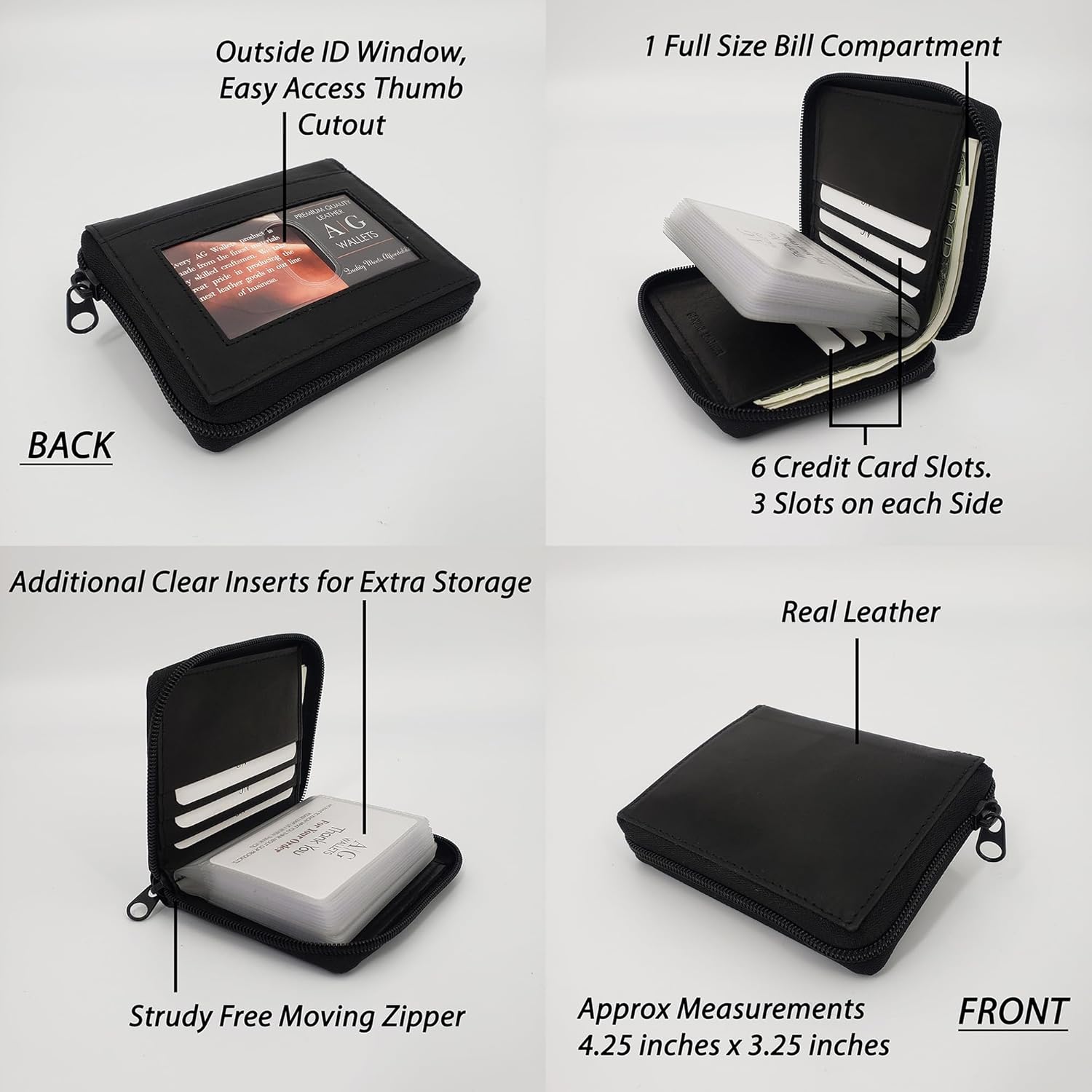 ag wallets Mens Zip Around Leather Wallet with Inserts (Black)