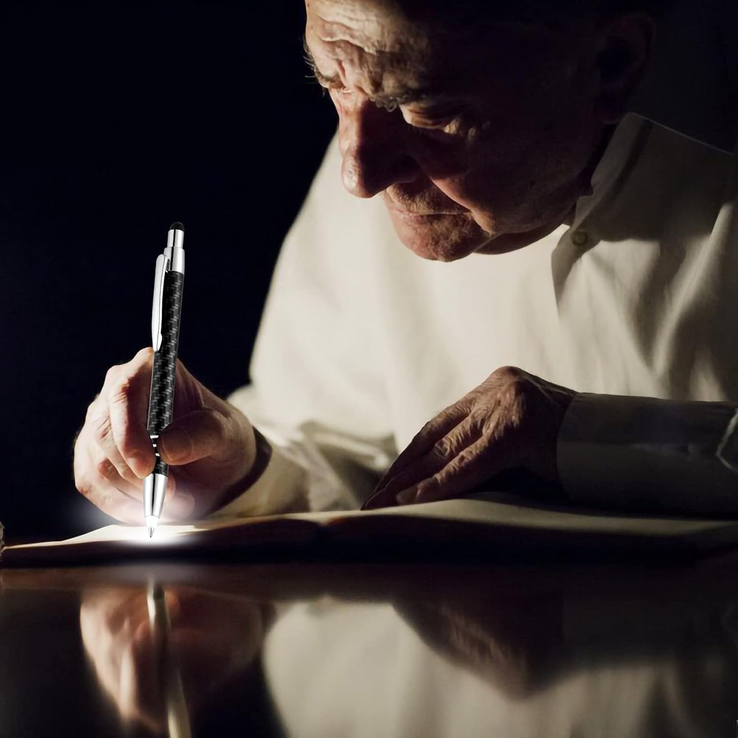 - ✍【UNIVERSAL AND GIFT IDEAS】: Perfect for anyone who needs lighting in dark environment - bedtime diary, night shift doctor and nurse, students, restaurants, inspired writer at night, cinema staff, pilot, military etc. Also a stylus top click which compatible with your touch screens. Nice Gift Ideas for everyone for writing.