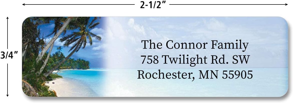 Colorful Images Tropical Paradise Rolled Personalized Return Address Mailing Labels with Dispenser, Customize with Name & Shipping Address, 250 ¾” x 2½” Self Adhesive, Easy Peel Label Roll