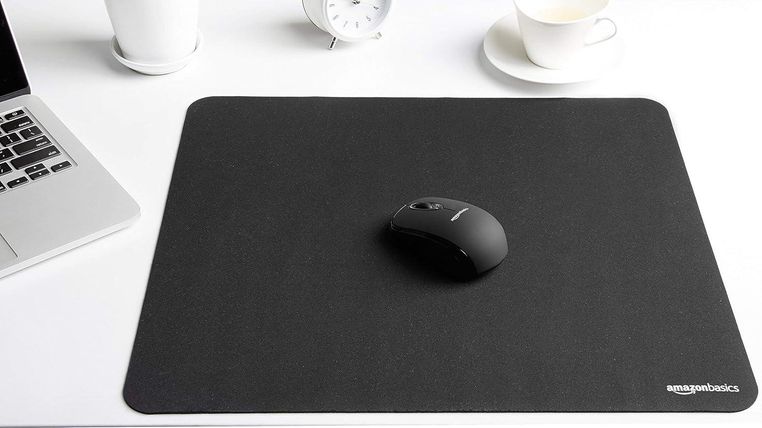Amazon Basics Large Square Computer Mouse Pad, Cloth and Rubberized Base, 17.7L x 15.7W inches, Black