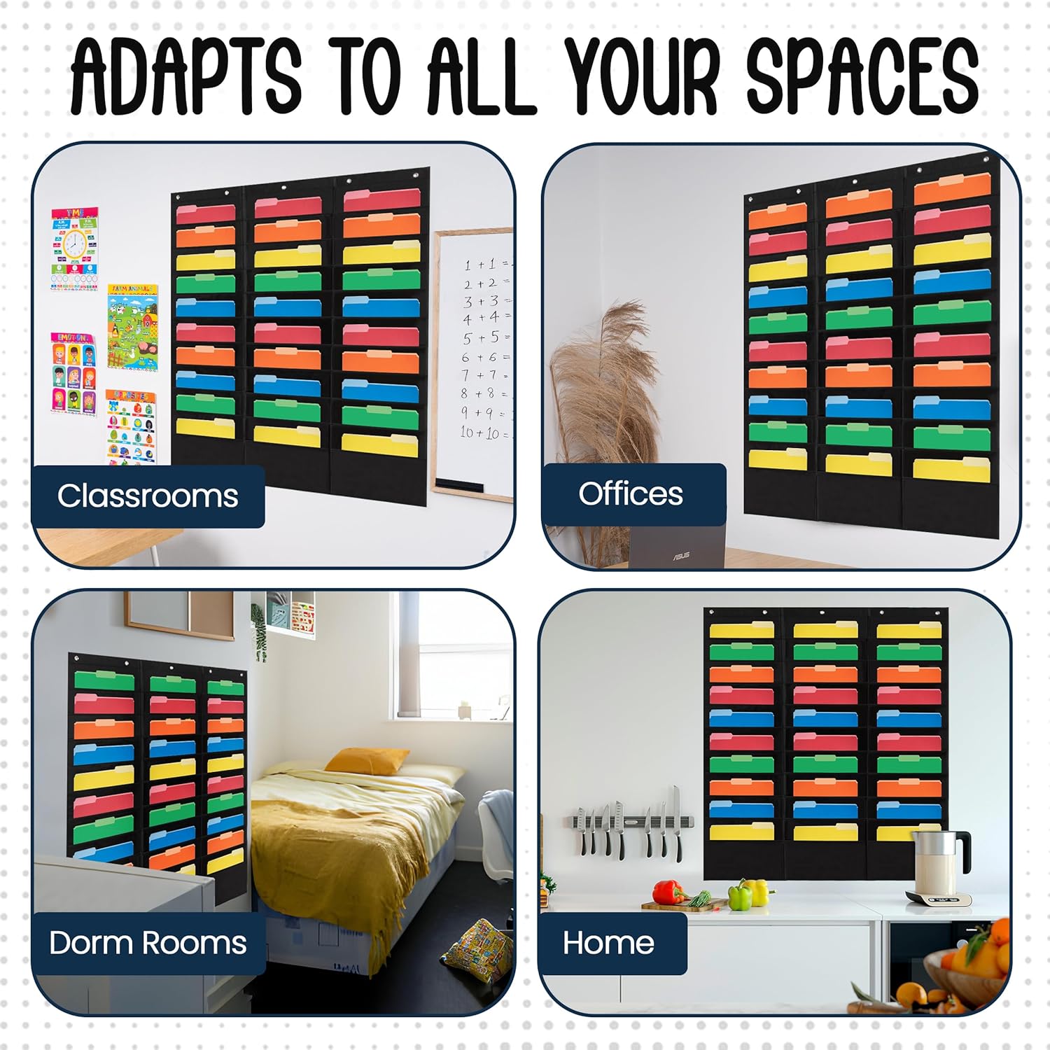 - Versatile Use - From classrooms to dorm rooms, offices to homes, our hanging file folders pocket chart fits in seamlessly. The clean and classic design adds a touch of elegance wherever you choose to use it.