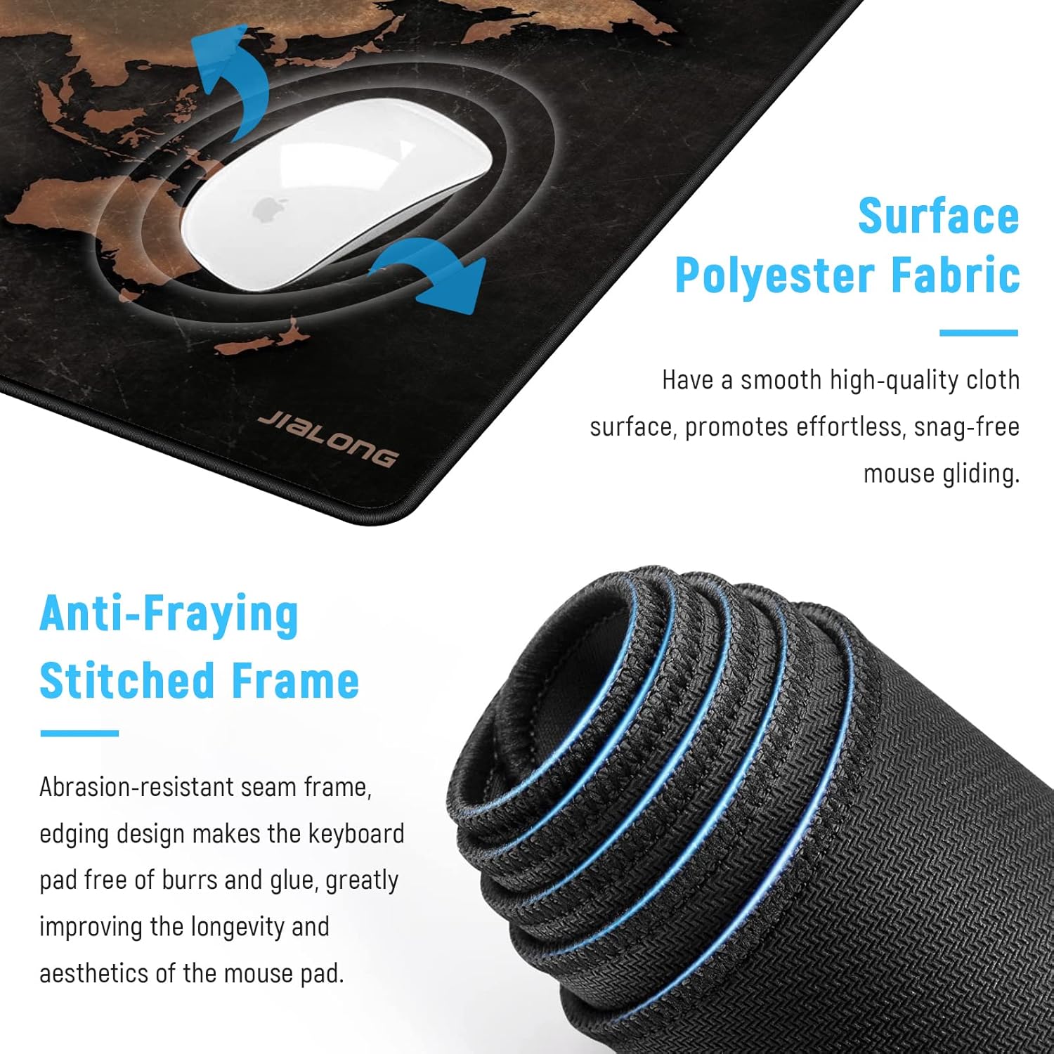 - Thicken Precision Seams - The edge of JIALONG mousepad with a very close knit method, Stitching along the edges of the surface ensure it will never fray or peel to make mouse mat is more durable and fashionable
