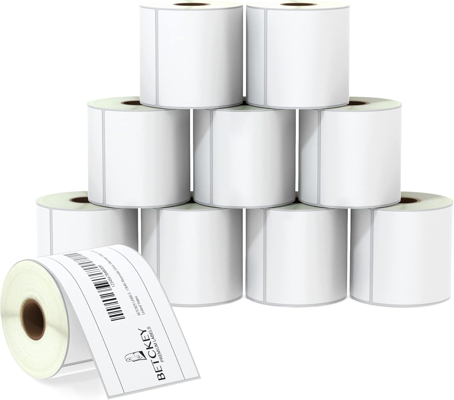 BETCKEY - 3" x 5" (76 mm x 127 mm) Multipurpose & Large Shipping Labels Compatible with Zebra & Rollo Label Printer,Premium Adhesive & Perforated [10 Rolls, 3500 Labels]