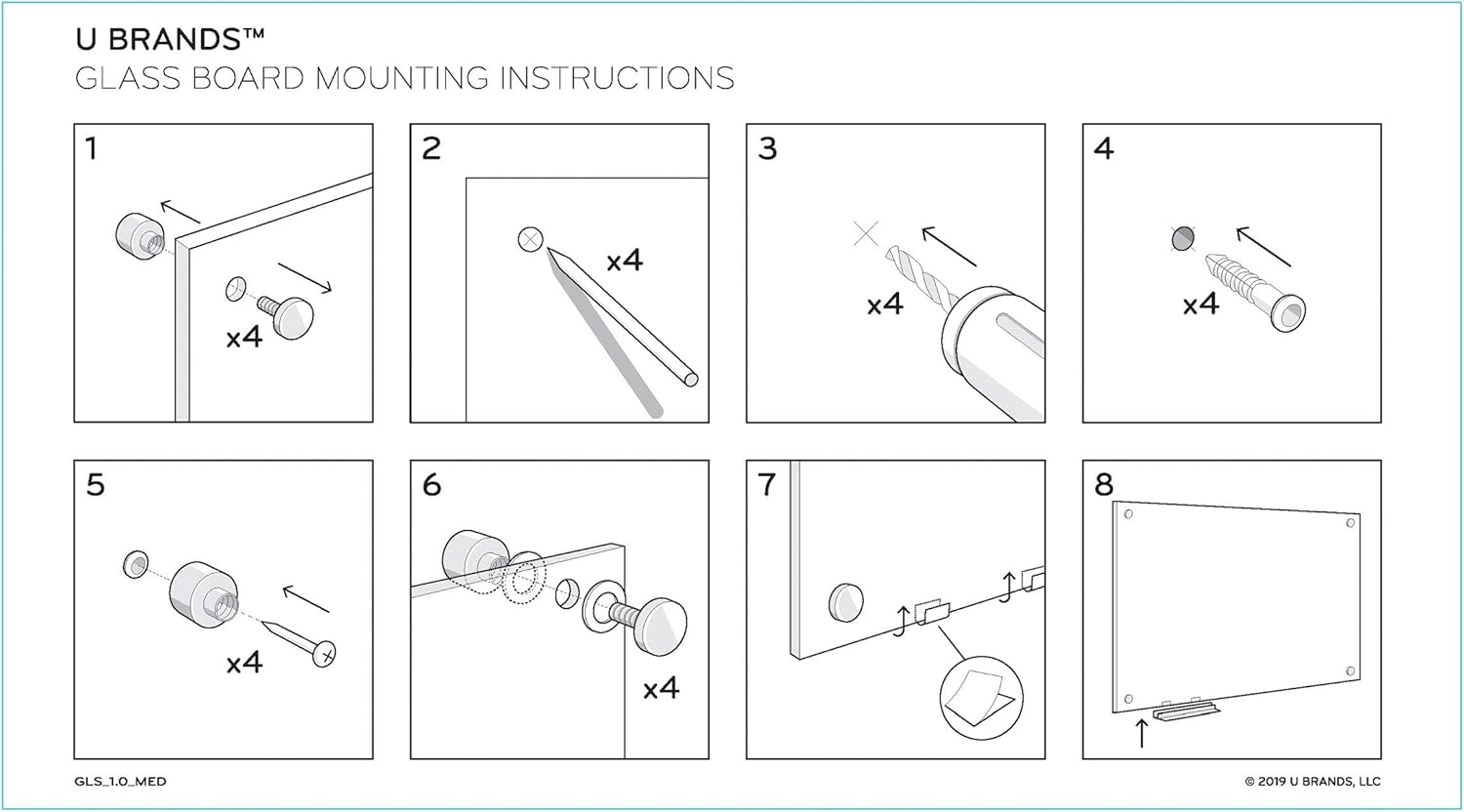 U Brands Magnetic Glass Dry Erase Board, Only for Use with HIGH Energy Magnets, 24” x 36" Inches, White Frosted Surface, Frameless (2298U00-01)