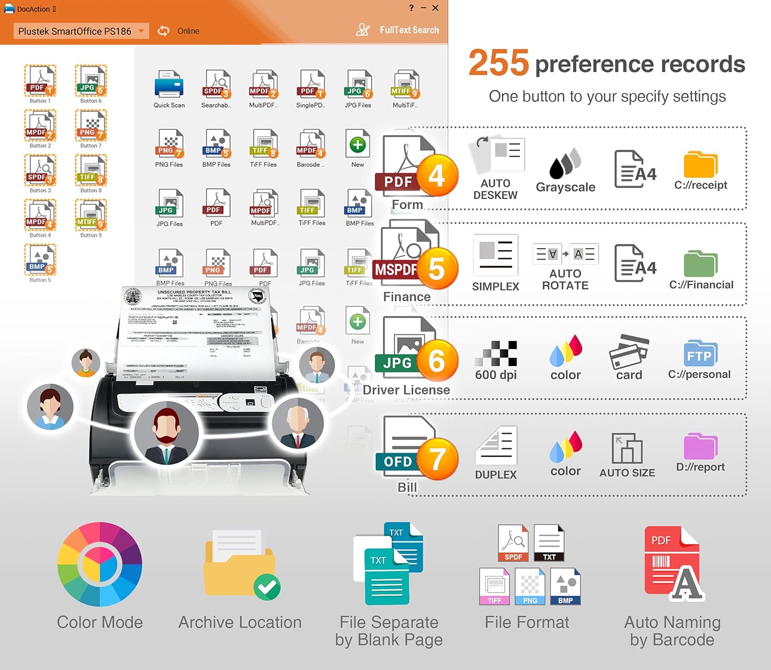 - Up to 255 customize favorite scan file setting with "Single Touch" , Support Windows 7/8/10