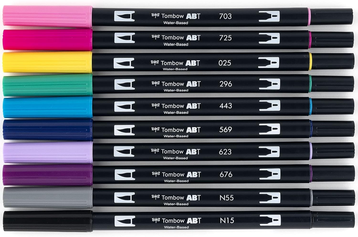 Tombow 56188 Dual Brush Pen Art Markers, Galaxy, 10-Pack. Blendable, Brush and Fine Tip Markers