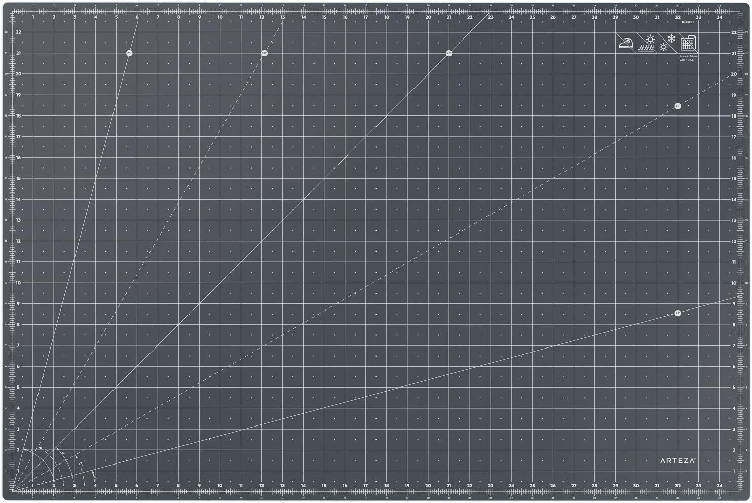 - Non-Glare Grid Surface with Angle Guides. Features a metric grid and angle lines (75°, 60°, 45°, 30°, 15°). Easy to read in all lighting conditions for accurate cutting and alignment.