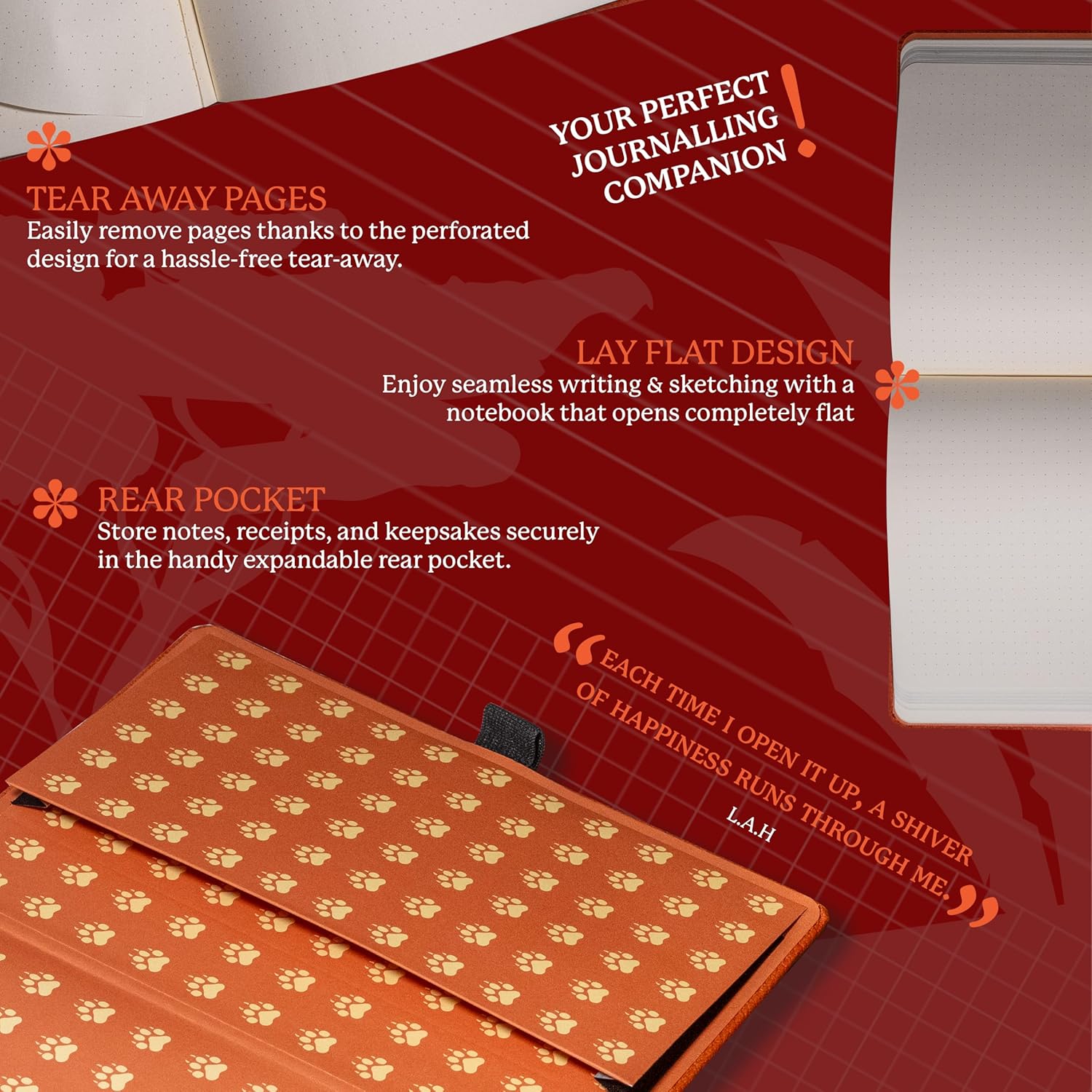 - CRAFTED FOR QUALITY: A hardcover PU vegan leather notebook with micro-perforated cream 100gsm pages. Features an elastic closure, inner pocket, built-in bookmark, and pen holder for organized, convenient, and stylish note-taking anywhere.