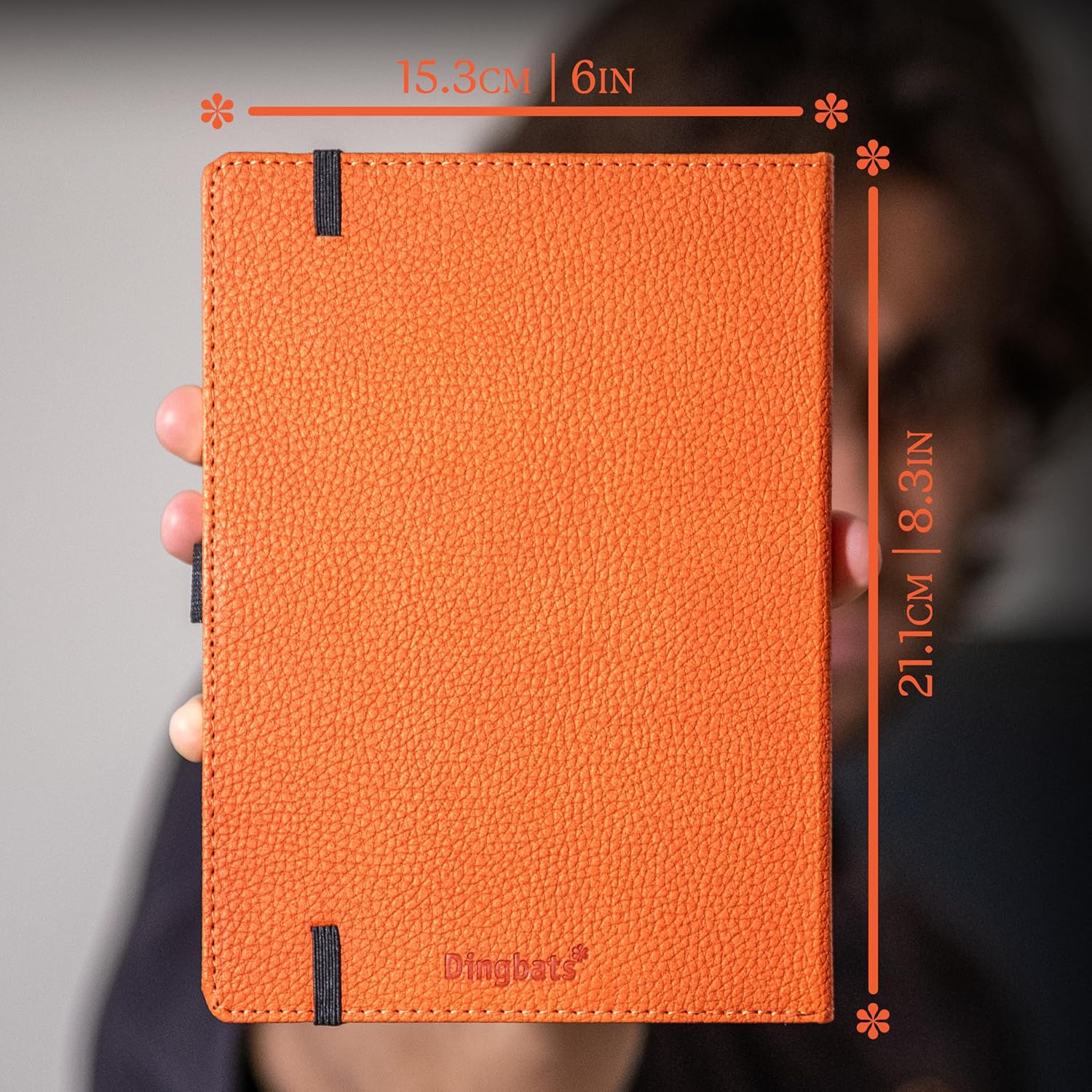 - A5 NOTEBOOK WITH LOTS O' FEATURES: Dingbats notebooks ooze quality - this hardcover bound leather notebook is crafted with PU vegan leather, micro-perforated Cream 100gsm pages, an elastic closure and pen holder. It's complete with animal footprint end sheets, and an inner pocket for a little added detail - the perfect gifts for loved ones, these travel essentials are a gift that keep on giving