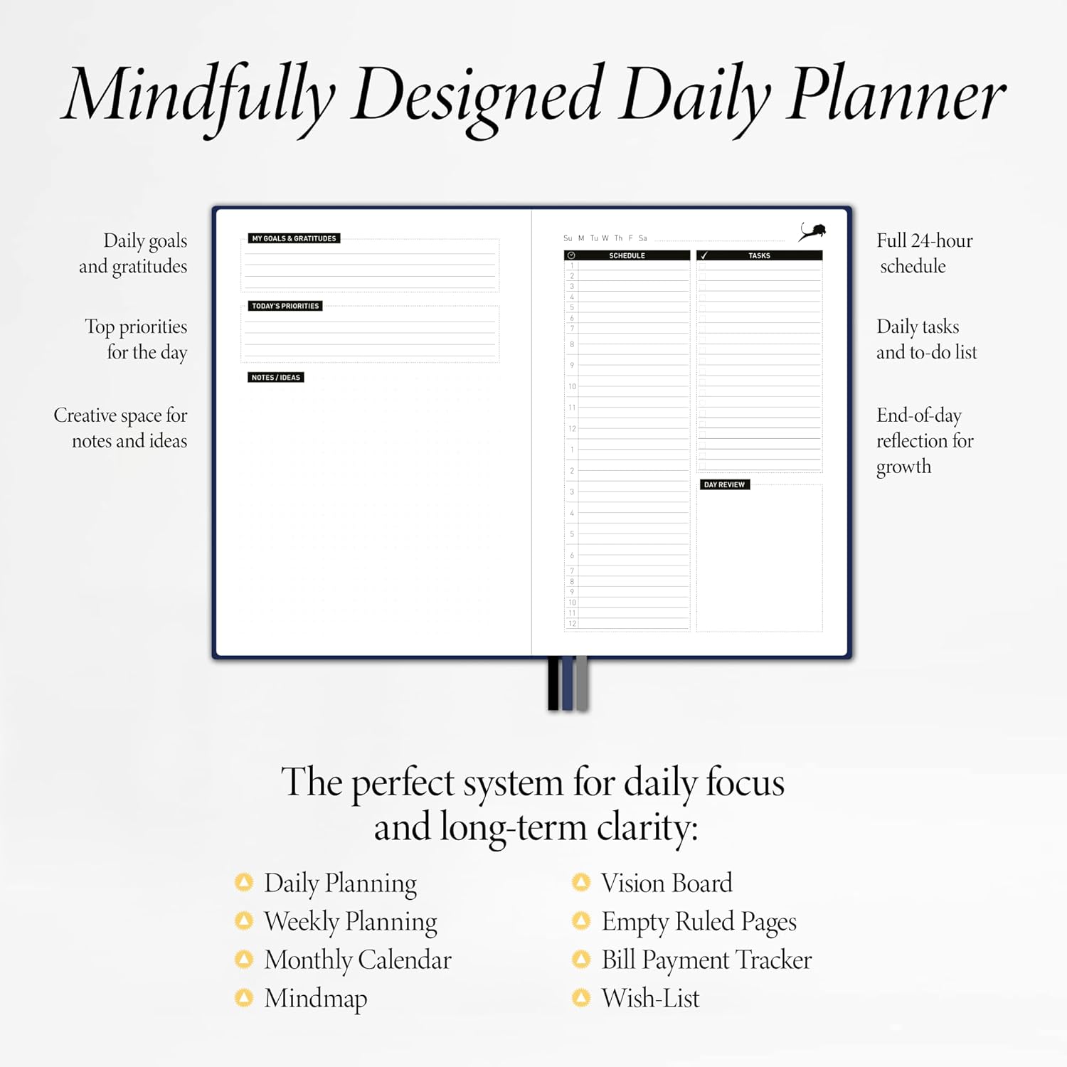 - ✅ PRODUCTIVITY LEADS TO HAPPINESS: Feel grounded, not overwhelmed. With built-in systems for prioritizing tasks and tracking progress, this planner empowers deep focus and real results.
