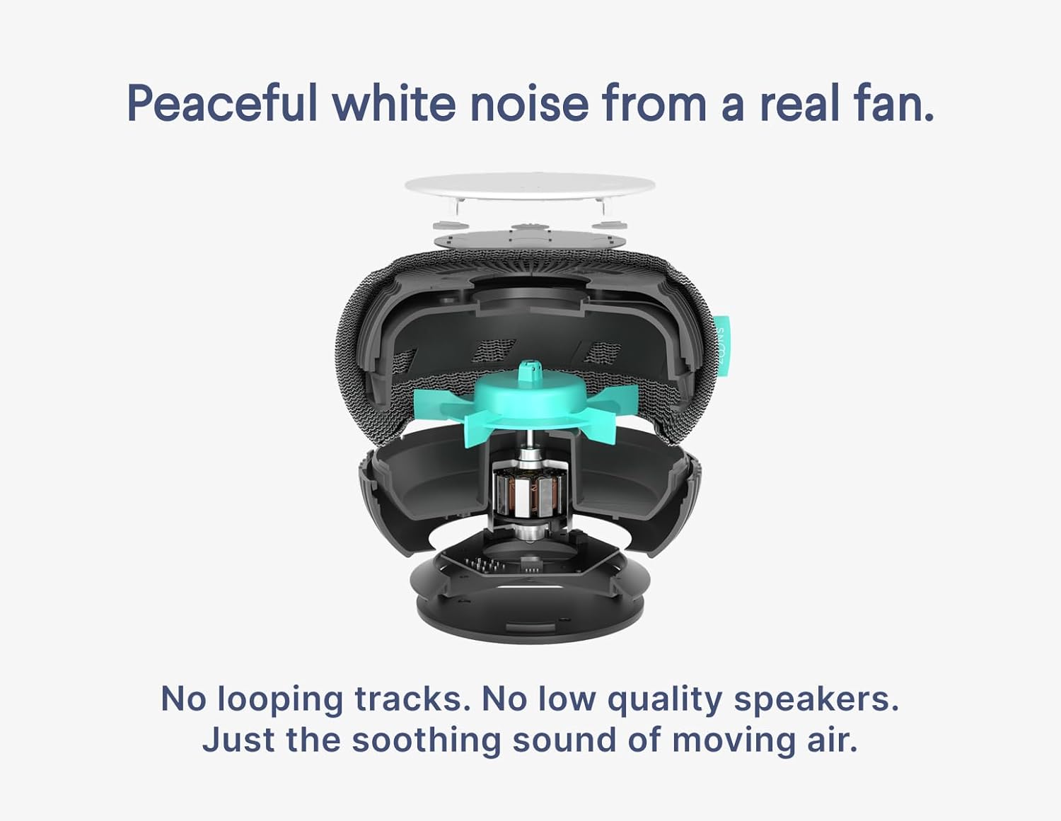 - Fall Asleep Faster: Non-looping, natural white noise from a real fan inside, backed by science to help you fall asleep faster and stay asleep longer.