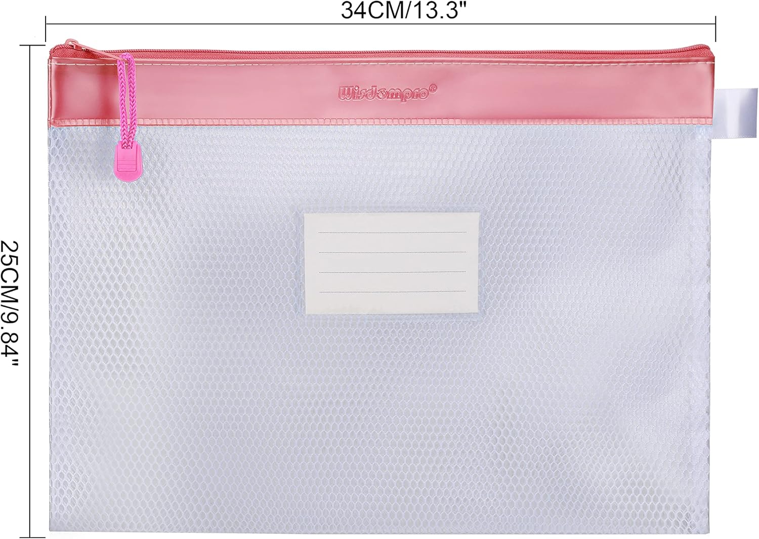 Zipper Pouch, Wisdompro 4 Packs Durable Letter Size Waterproof Mesh File Bag, Document Organizer - Pink