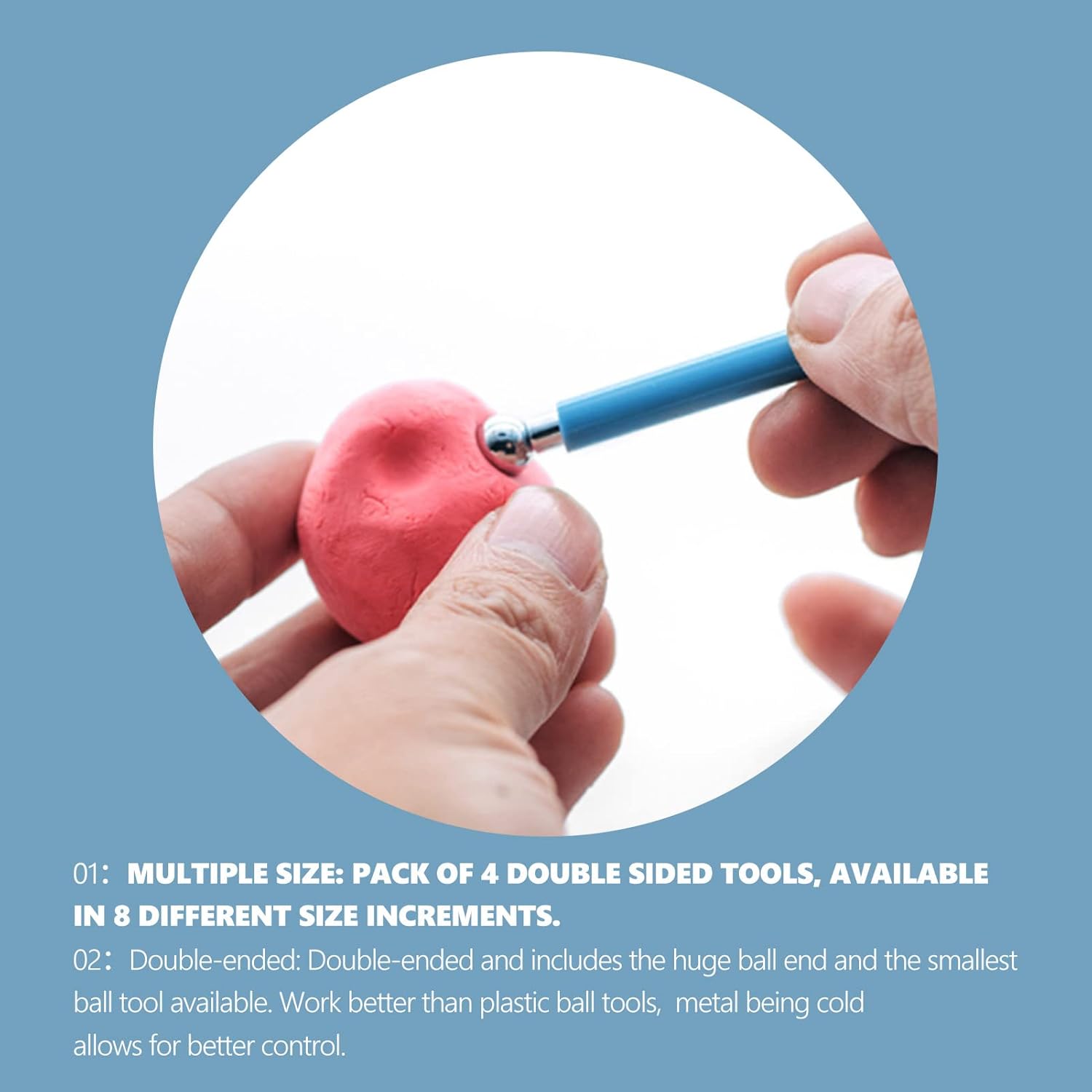 - DUAL ENDS DESIGH: Double-ended metal ball tools includes the huge ball end and the smallest ball tool available, provide more choices of balls, this clay sculpting tools are suitable for both home and school use