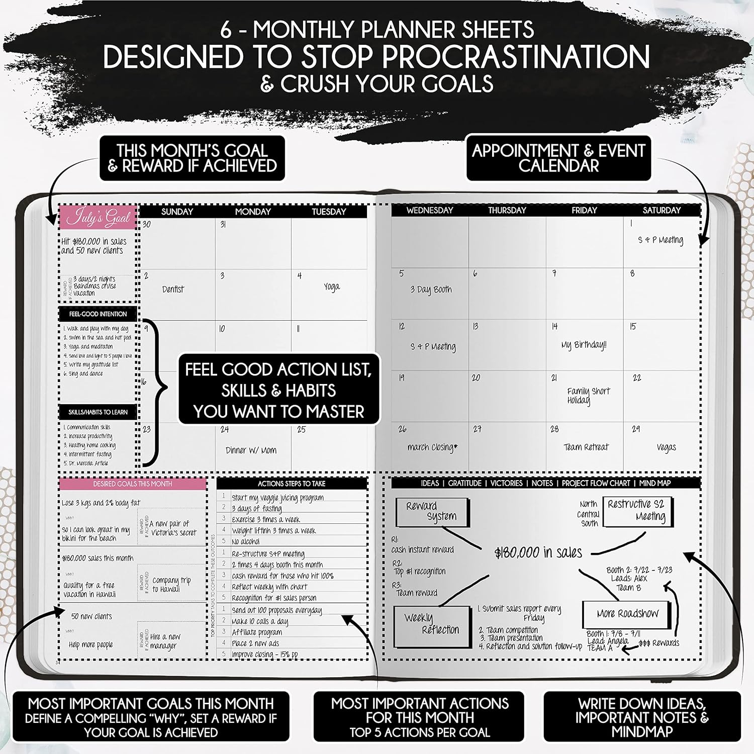 - MANIFESTATION JOURNAL - This deluxe daily planner and self-care journal comes in A5 size (5.8 x 8.3 inches). The life planner comprises 264 pages of thick 100 gsm paper, including 90 daily planning sheets, guiding you on how to become the best possible version of yourself on a mental, physical, and interpersonal level. It's a unique diary based on leading scientific studies proven to increase productivity and happiness. The journal features an out-foldable vision board to help you stay focused, morning and evening power questions, mind maps, reflection pages, habit trackers, a back pocket, and much more than any other planner on the market!