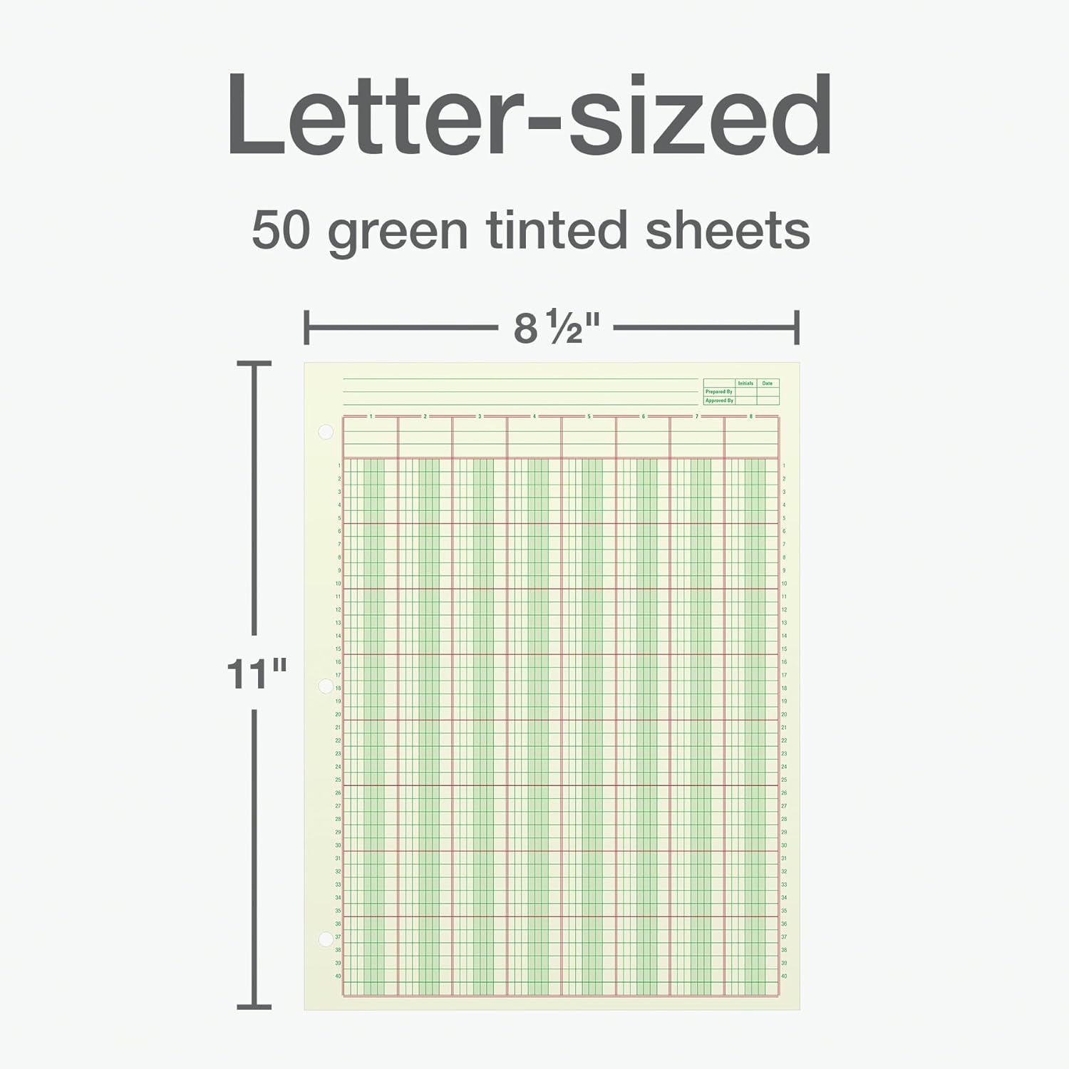 - Columnar sheets are printed on green tinted non-glare paper to help prevent eye strain; heavy-duty 75 gsm bond is acid free and archival safe for recordkeeping