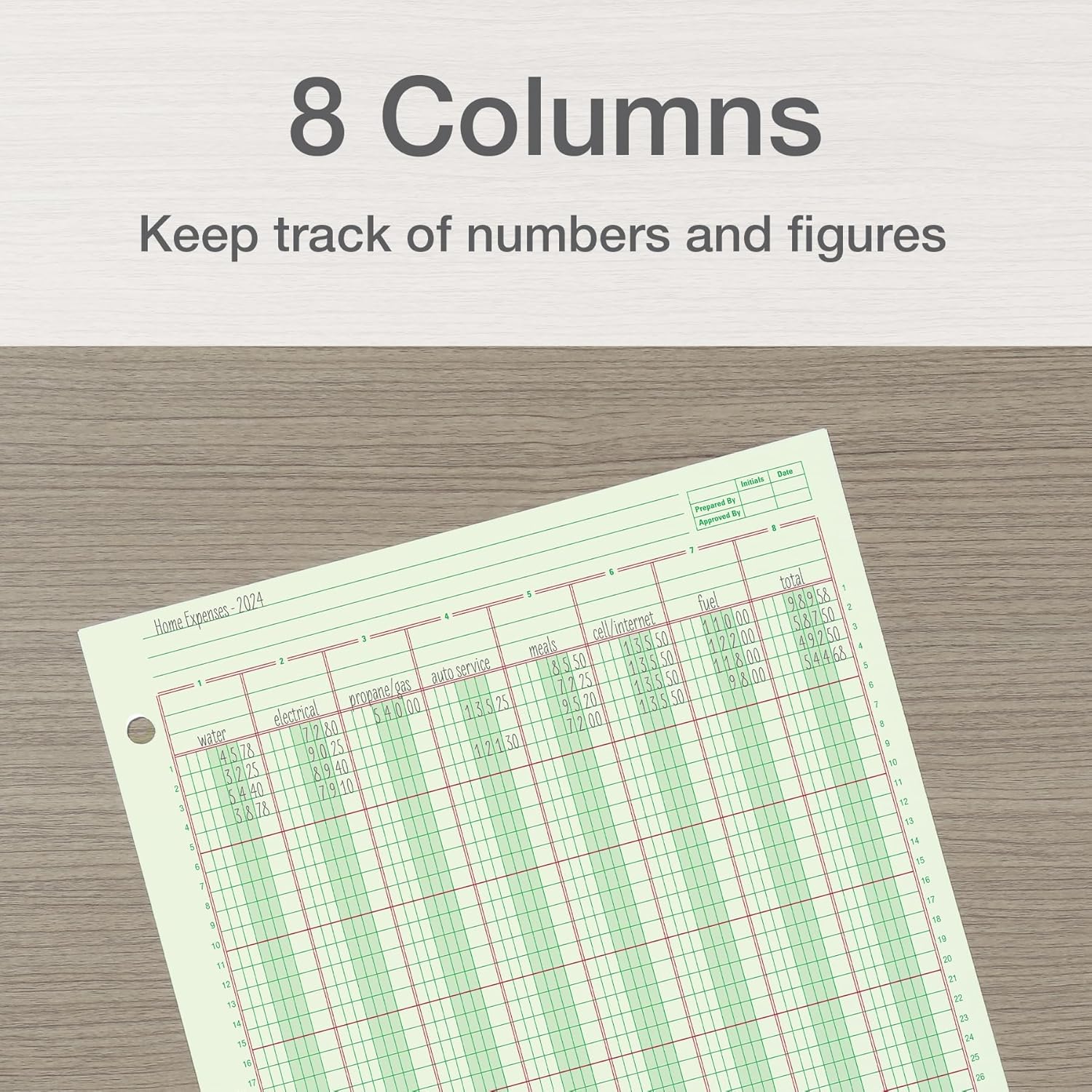 Adams Columnar Analysis Pad, 8 Column Ledger, 8.5" x 11", 100 Pages (50 Sheets), Green, 3 Hole Punch, for Accounting, Bookkeeping & Data (ACP85118)