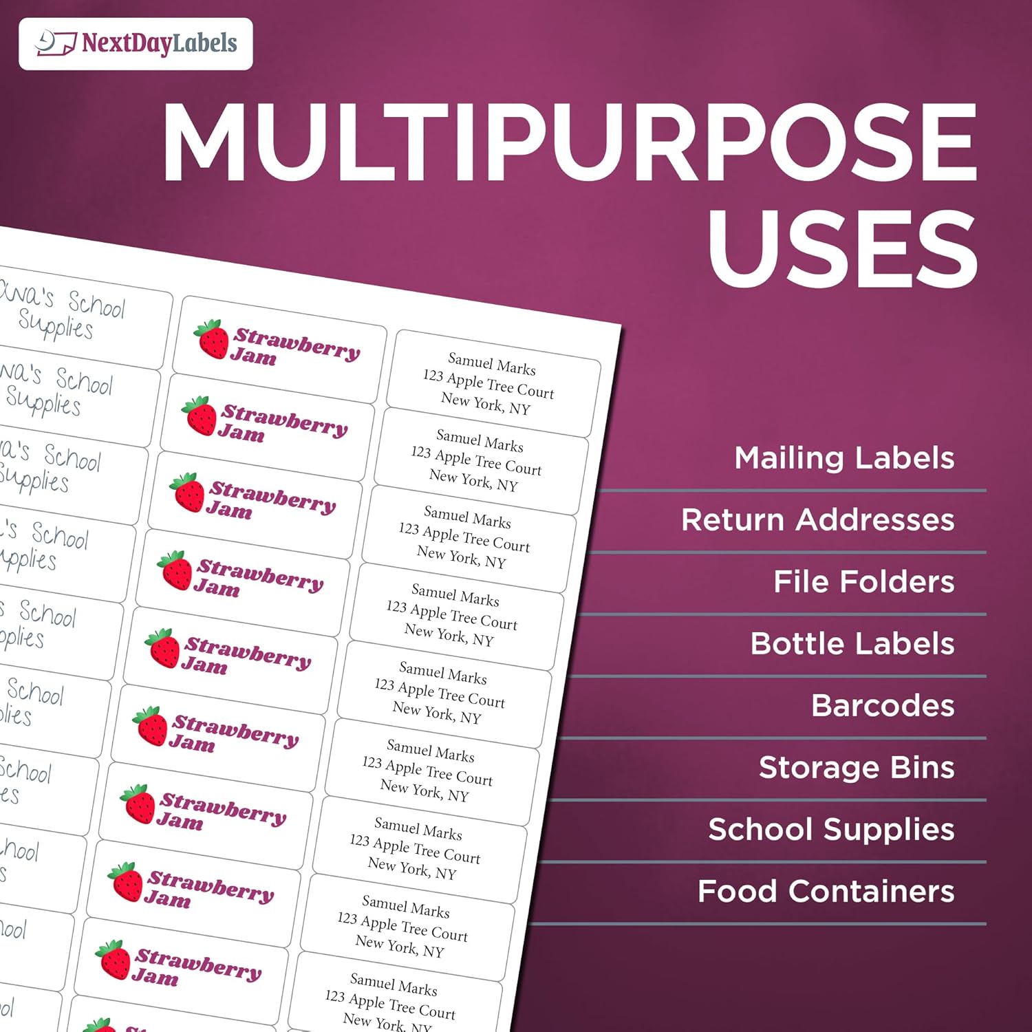 NextDayLabels - 2.5/8" x 1" Rectangular Sticker Labels for Printer - White Laser/Inkjet Printer Labels Return Address Labels Shipping Label Stickers (100 Sheets, 30 Per Sheet, 3000 Labels)