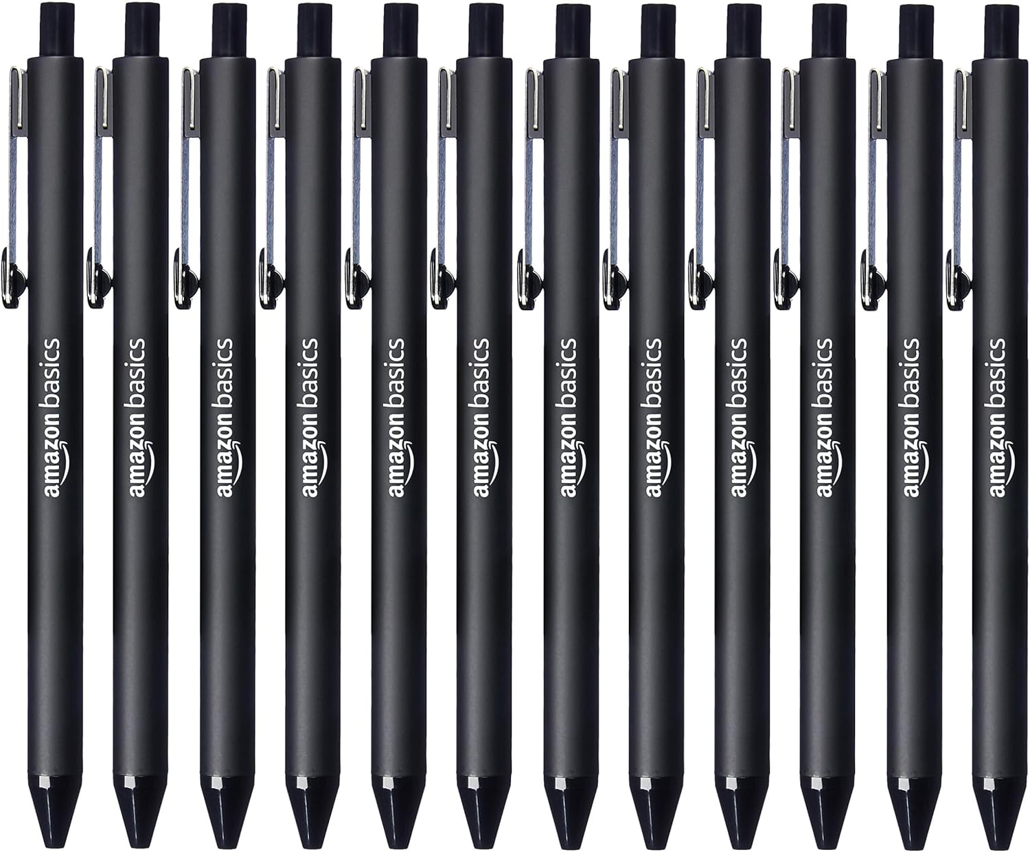 Amazon Basics Black Ballpoint Pens for Smooth Writing, Retractable, 12-Pack