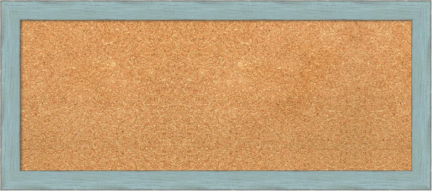 Amanti Art Natural Cork Board for Wall, 14x32 Vision Board with Blue Wood Frame, Medium Corkboard Office Decor for Home Organization, Rustic Farmhouse Corkboard Pinboard to display items for home