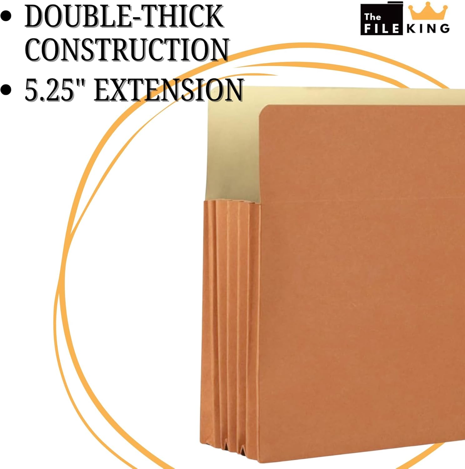 The File King Accordion File Folders Letter Size | Box of 50 Redropes | Expanding File Folder - 5.25" Expansion | Expandable Accordian File Organizer Pocket | Redwell Filing Organization & Storage